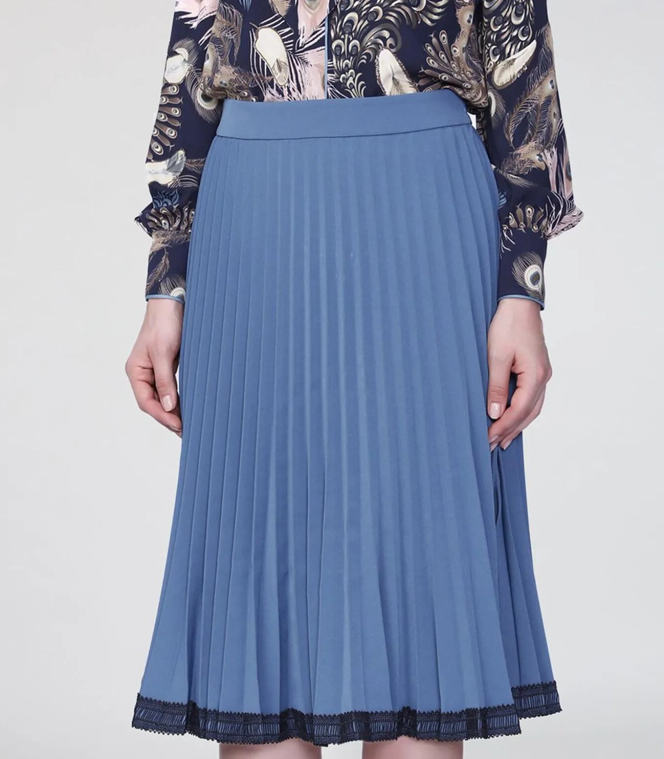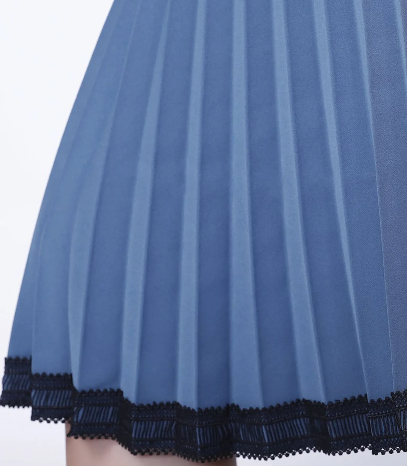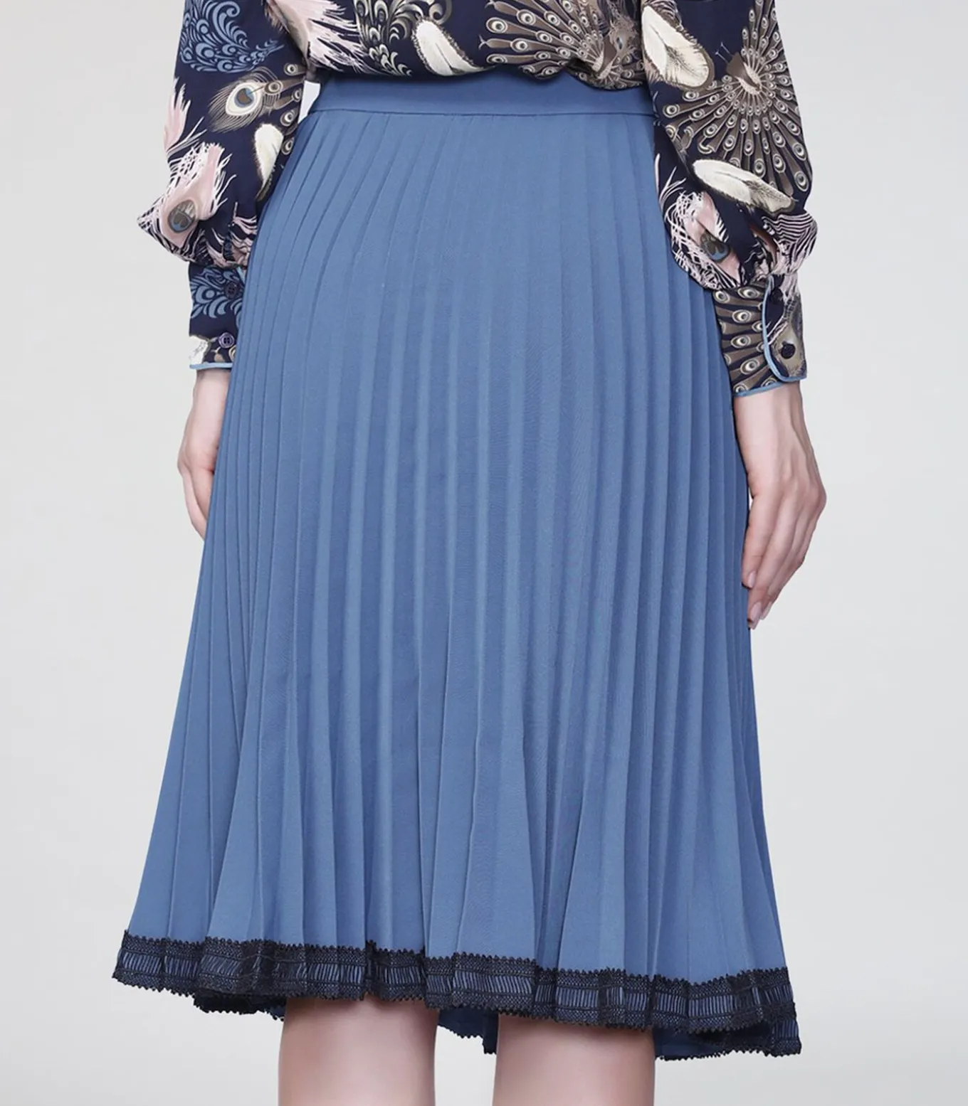 Een essentieel: de geplooide rok. De EGDE in zwart kant ontsteekt de plooien op de zoom en brengt verfijning. Veel plezier met het associëren van dit stuk met laarzen, hakken of ballerina’s. Makkelijk te matchen met een T–shirt, een gedrukte of gewone blouse en/of een kort jas.