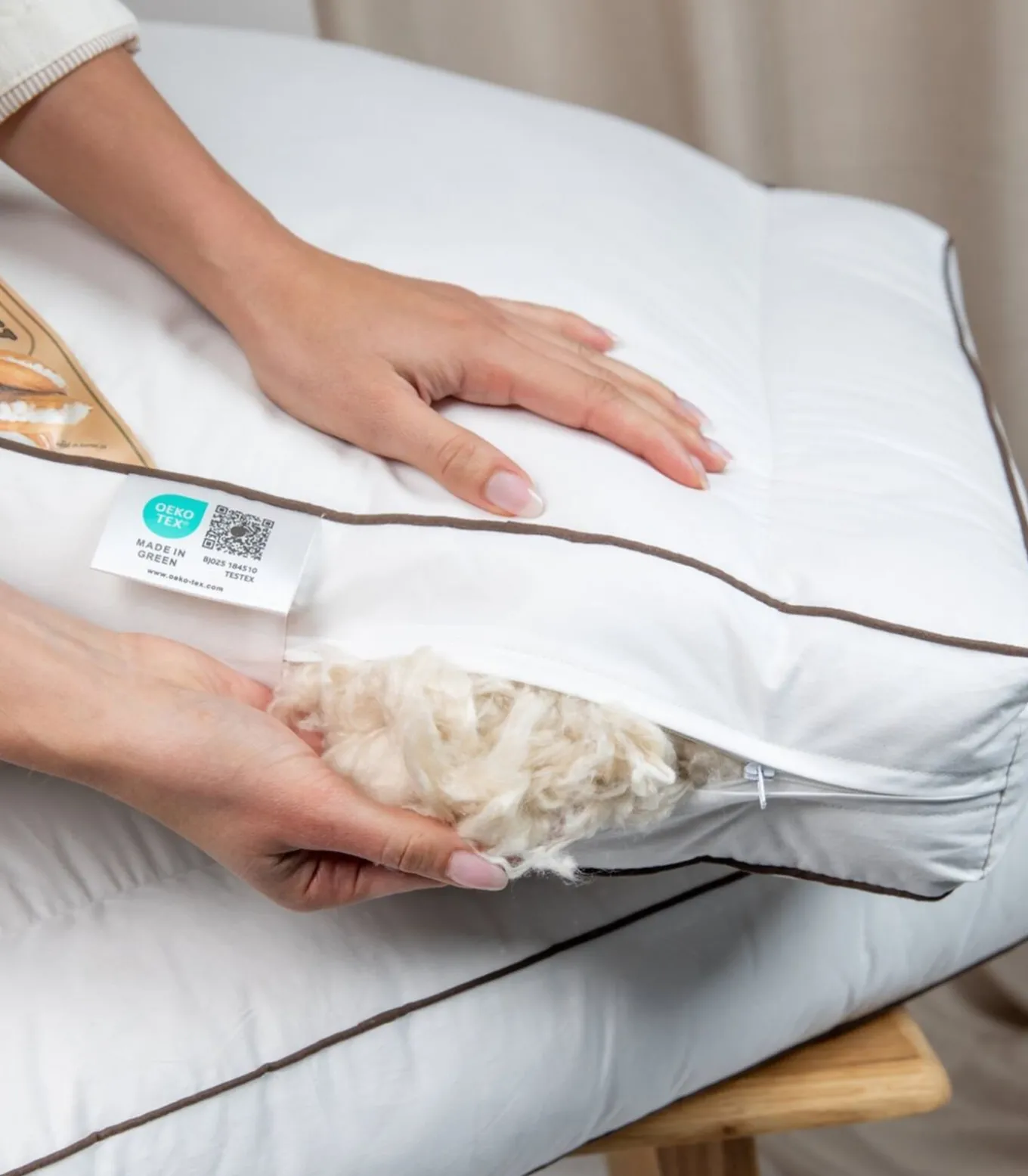 Kapok Hoofdkussens zijn verzegeld door een hygiëne–verzegeling, zo bent u ALTIJD gerustgesteld van een nieuw, ongebruikt en onbeslapen hygiënisch product.
