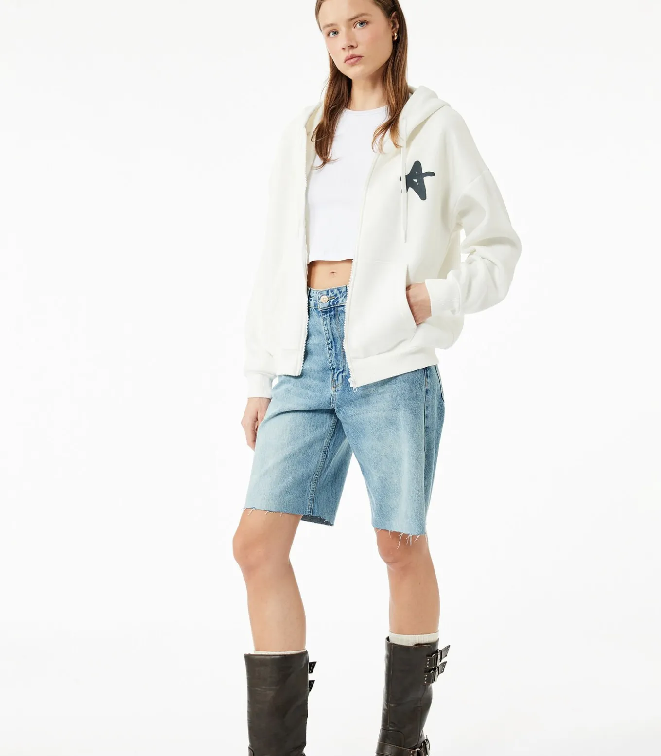 Dit comfortabele ecru sweatshirt met capuchon biedt een moderne uitstraling en dagelijks gemak door de ritssluiting en de handige kangoeroezak aan de voorkant. De achterzijde is voorzien van een opvallende print die een dynamische touch aan je stijl toevoegt. Ideaal voor zowel sportieve activiteiten als casual dagen dankzij de zachte, warme stof.