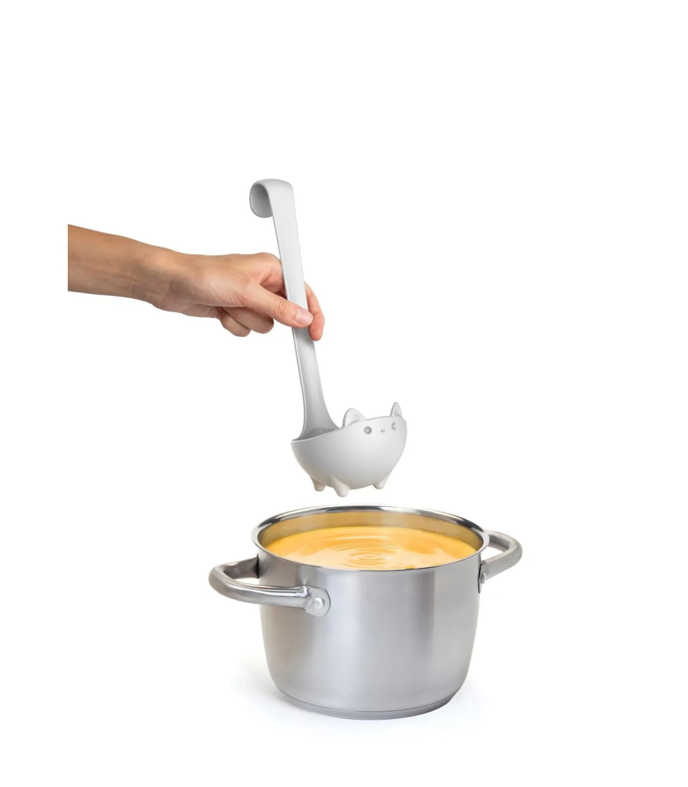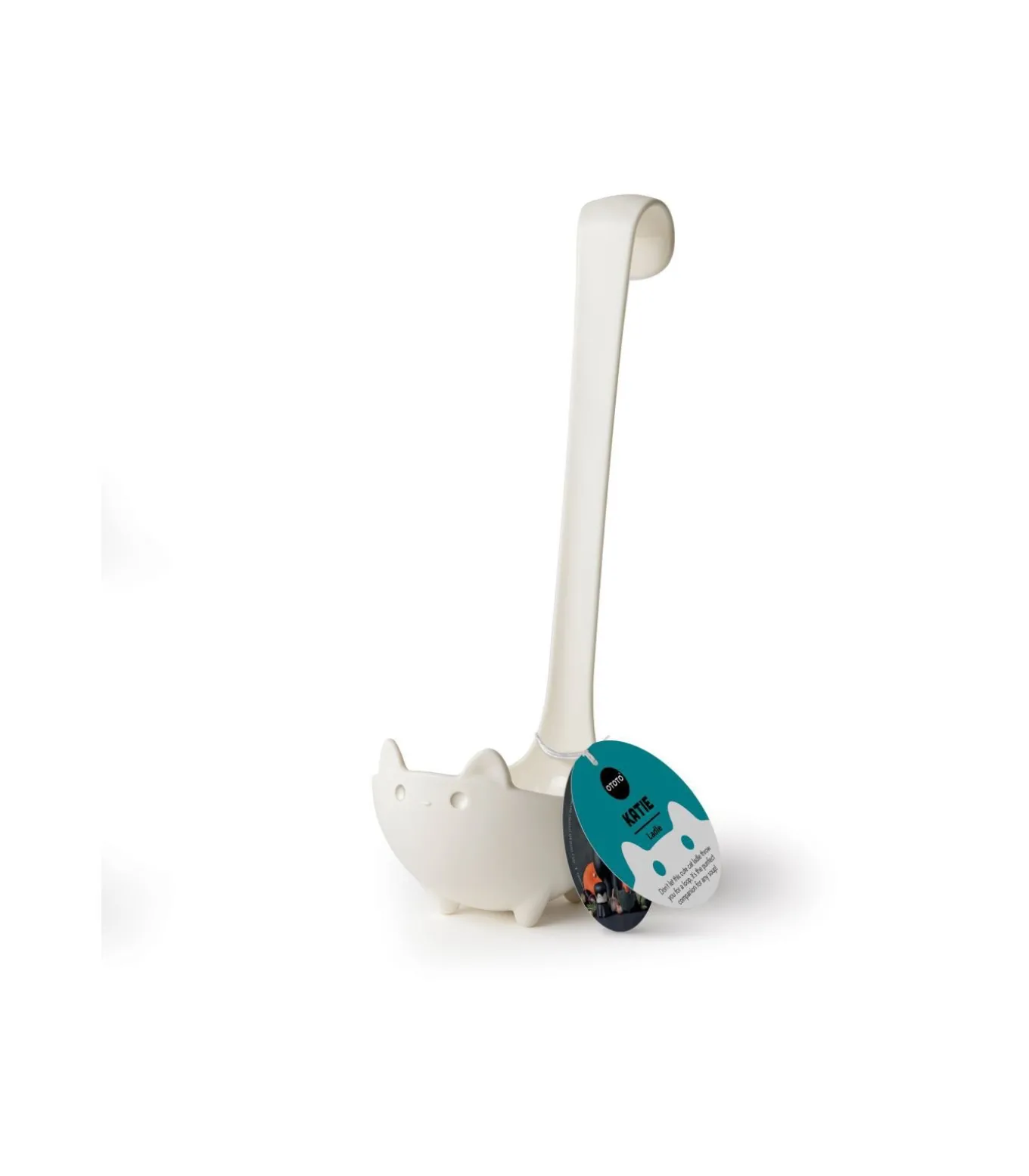 De elegante witte Katie opscheplepel van Ototo voegt een speels accent toe aan je keuken, terwijl hij ook nog eens heel praktisch is. Dankzij het comfortabele handvat ligt Katie perfect in de hand, of je nu schept of roert. Na gebruik kun je Katie eenvoudig in de vaatwasser plaatsen voor een snelle reiniging. En als je haar even niet nodig hebt, hang je haar gewoon op aan de staart – een slimme en stijlvolle manier om je keukenaccessoires te bewaren.
