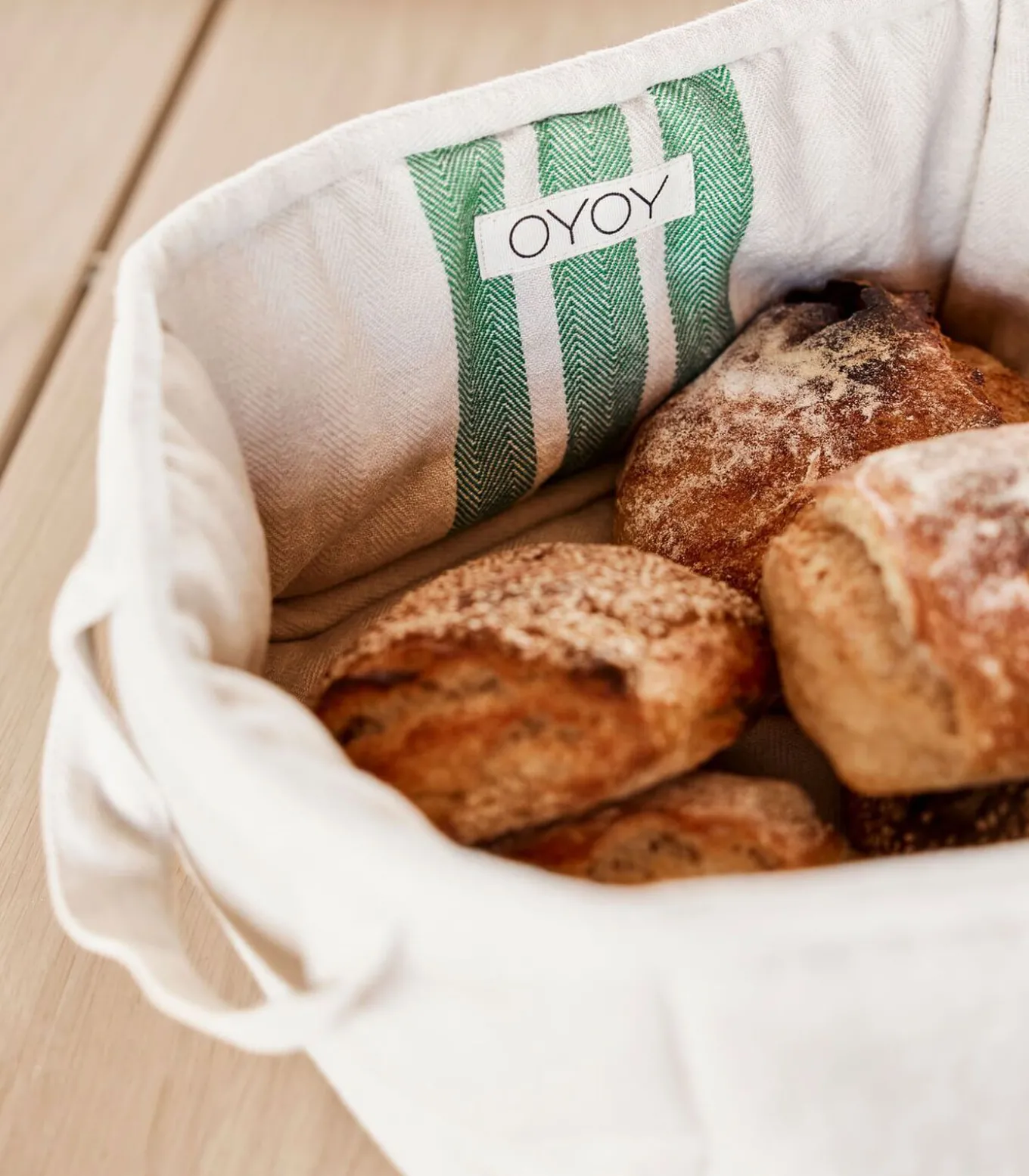 De Linu Broodmand is een stijlvolle toevoeging aan de Linu serie. Hij is gemaakt van biologisch katoen met een Oeko–Tex polyester vulling en heeft een visgraatmotief en een eenvoudig ontwerp met een variatie van verschillende strepen, wat een vleugje charme toevoegt aan je tafel.