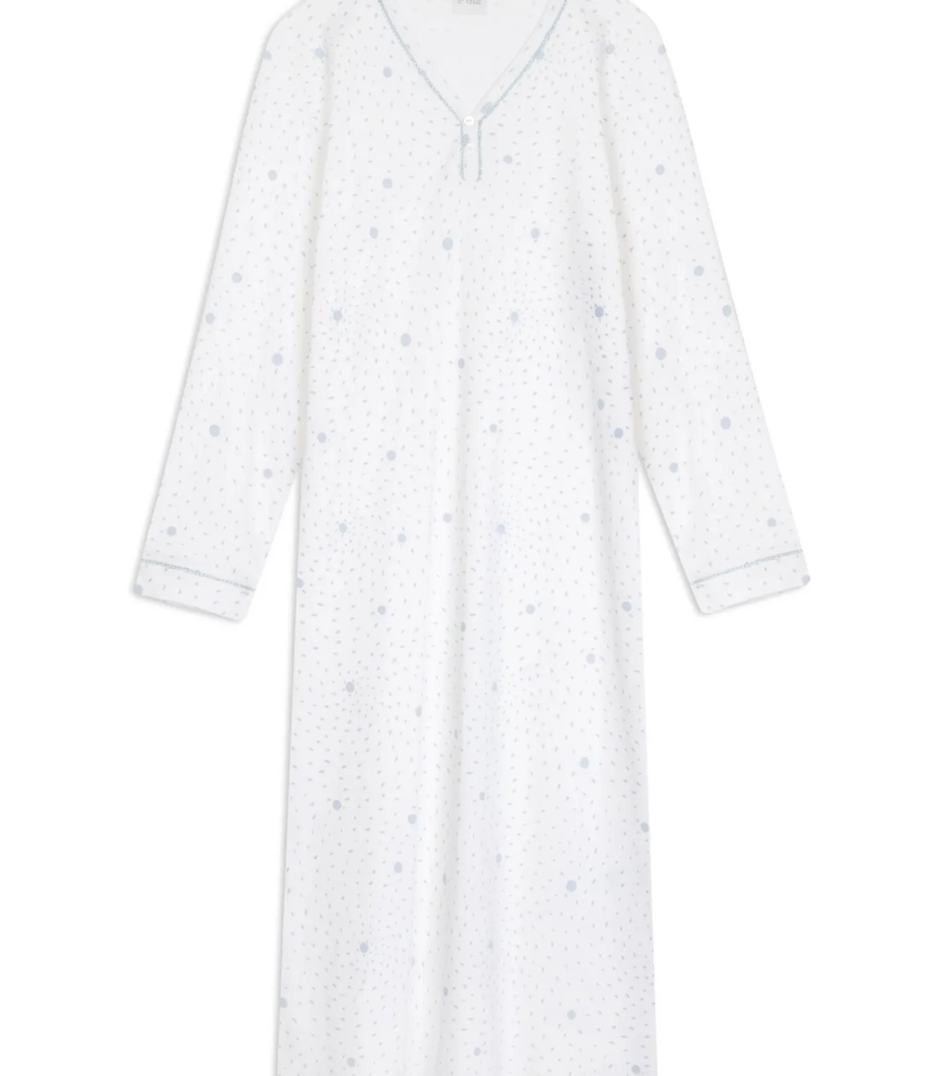 Het valt op door de zorgvuldige afwerking en de delicate print, verkrijgbaar in twee uitvoeringen: grijs op een lichtroze achtergrond of hemelsblauw op een ecru achtergrond. Maak je nachtkleding compleet met de Club– of Kelly–jas, een kamerjas, een badjas of een Essentiel–jas om je warm te houden als je uit bed stapt.