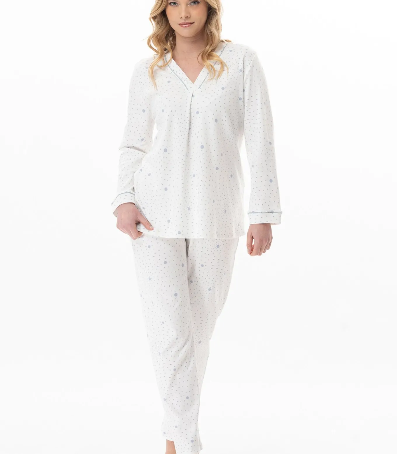 – V–hals met brede rand en een boord aan de mouwen, geaccentueerd door een Made in Italy picot vlecht, die een vleugje vrouwelijkheid toevoegt aan de pyjama.