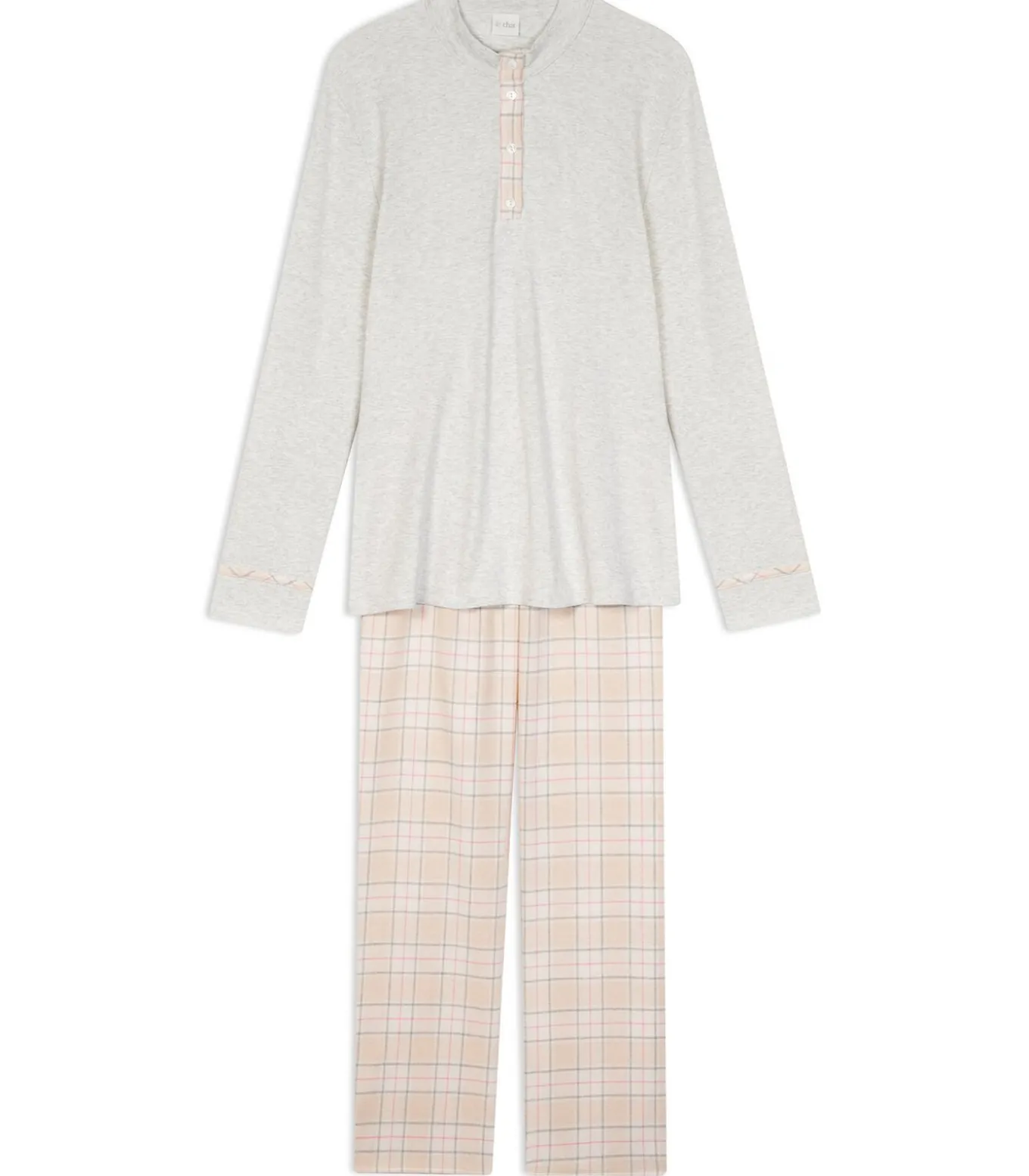 Met een licht vintage gevoel, maar bovenal een cocoon–essential voor 2025–2026, zal deze pyjama je vergezellen vanaf de eerste koude herfstdagen voor een goede nachtrust, voor je wellnessroutines of voor al je gezellige momenten thuis. De volledige knoopsluiting maakt hem praktisch en gemakkelijk te dragen: ideaal voor borstvoeding, herstel of gewoon om je moeiteloos aan te kleden.