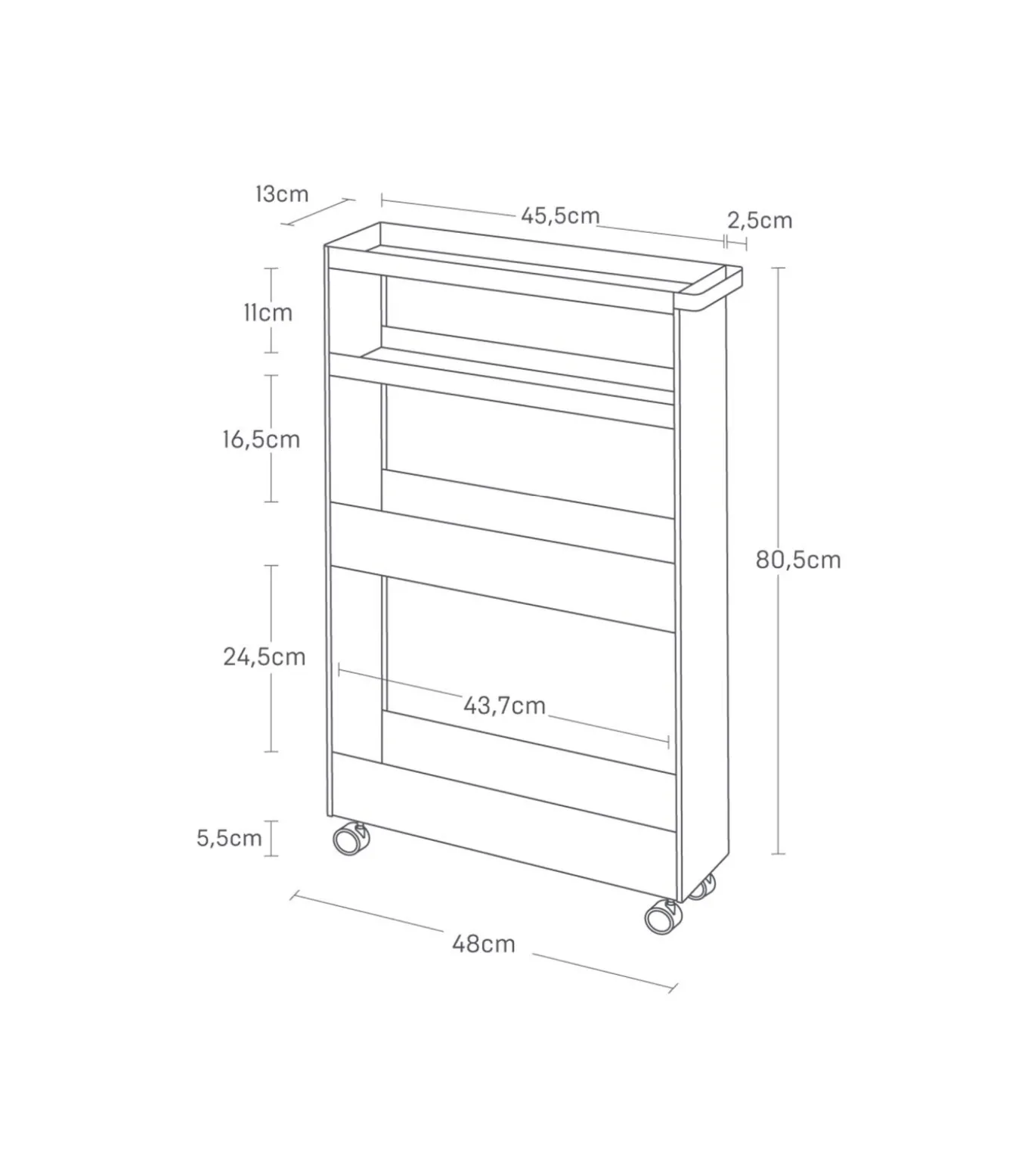 Voor het organiseren van keukenartikelen, ingrediënten of andere huishoudelijke benodigdheden is deze opbergkar van Yamazaki ideaal. Het smalle design zorgt ervoor dat de kar eenvoudig in smalle hoekjes geplaatst worden, om zo iedere ruimte optimaal te benutten.