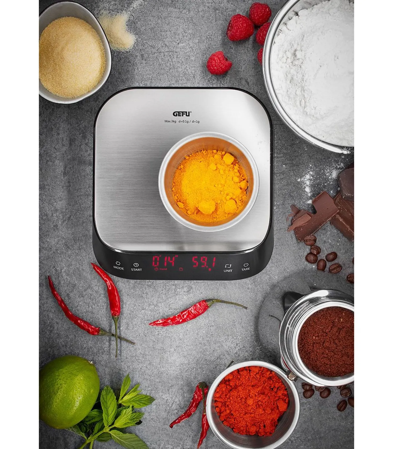 Deze Gefu keukenweegschaal Preziso is onmisbaar in jouw keuken! Gemaakt van kunststof en zilver en zwart van kleur, heeft deze weegschaal een meetbereik van 0,01 gram tot 3 kg. Het grote LED display maakt deze precisieweegschaal gemakkelijk af te lezen. De Gefu Keukenweegschaal Preziso heeft een handmatige weeg en tarra–funtie en een timer tot 19:59. De weegschaal wordt geleverd met AAA baterijen, zodat jij hem meteen kan gebruiken na ontvangst!