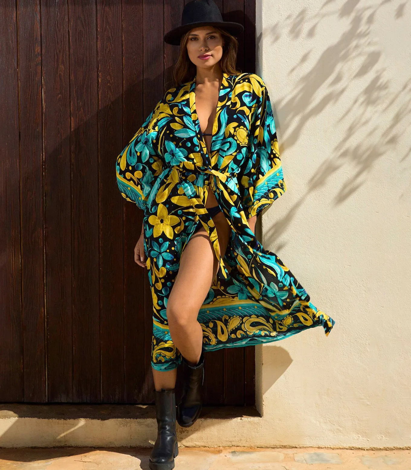 ✨ Stylingtip: Draag de kimono robe over je bikini voor een zonnige stranddag, of combineer hem met een casual short en sandalen voor een relaxte zomeroutfit. En met boots maak je een statement op een festival. De print komt prachtig tot zijn recht met gouden accessoires, waardoor je look helemaal compleet is.