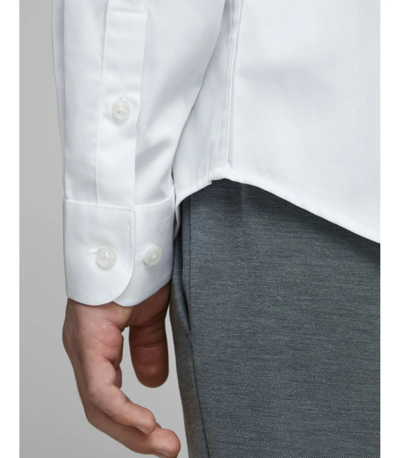 BOYS’ JACK&JONES JUNIOR SHIRT – Jongens overhemd met lange mouwen – Ronde zoom – Klassieke kraag – Voor– en achterpijltjes – Manikin meet 158 cm en draagt maat 152 – JACK & JONES JUNIOR 98% Katoen, 2% Elastane Machinewasbaar op 30 °C Gebruik geen bleekmiddel Droog op laag vuur Strijkset op laag vuur. Maximale temperatuur: 100 °C Droge was (behalve trichloorethyleen) Hang op om te drogen.