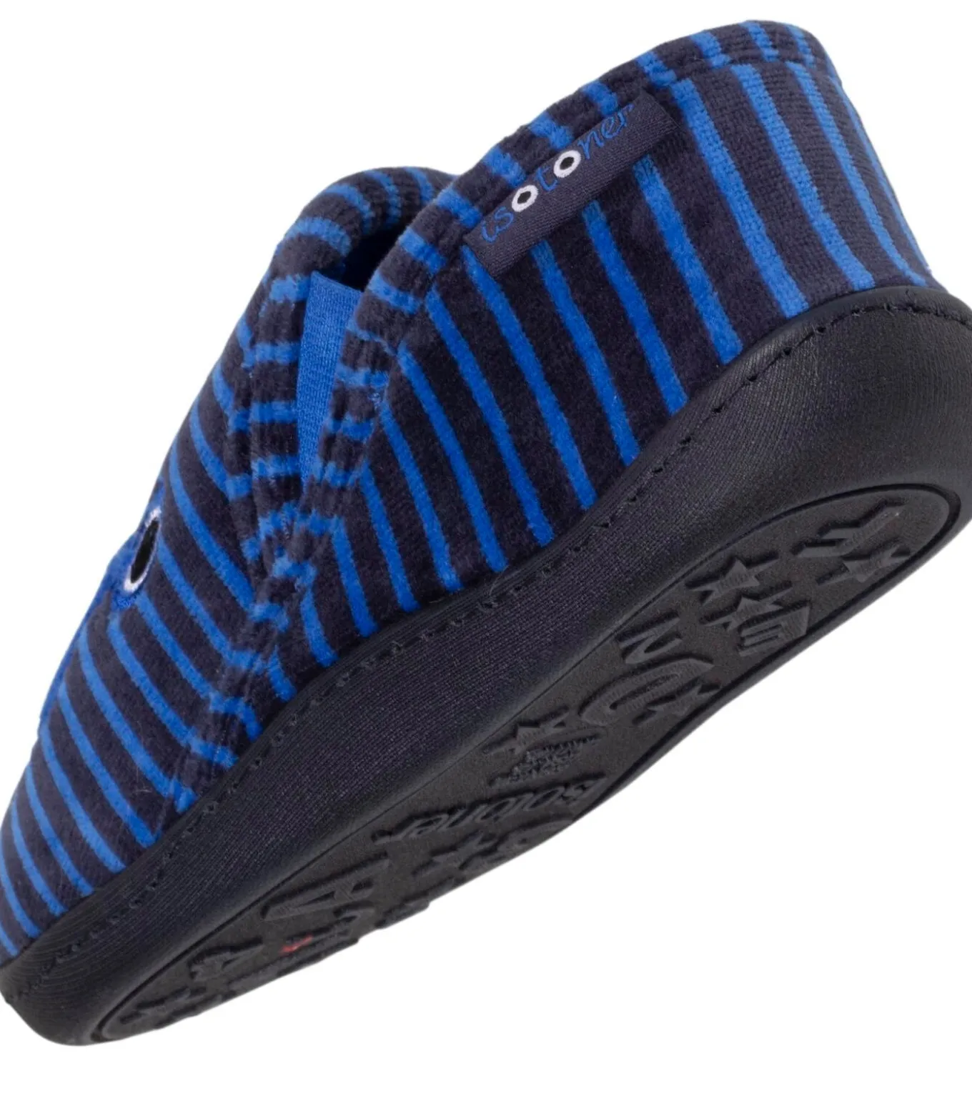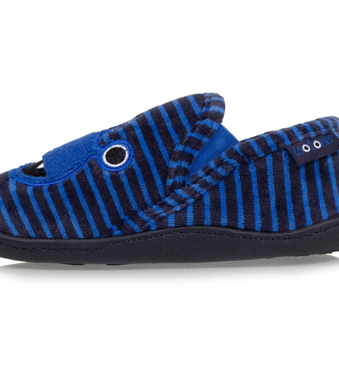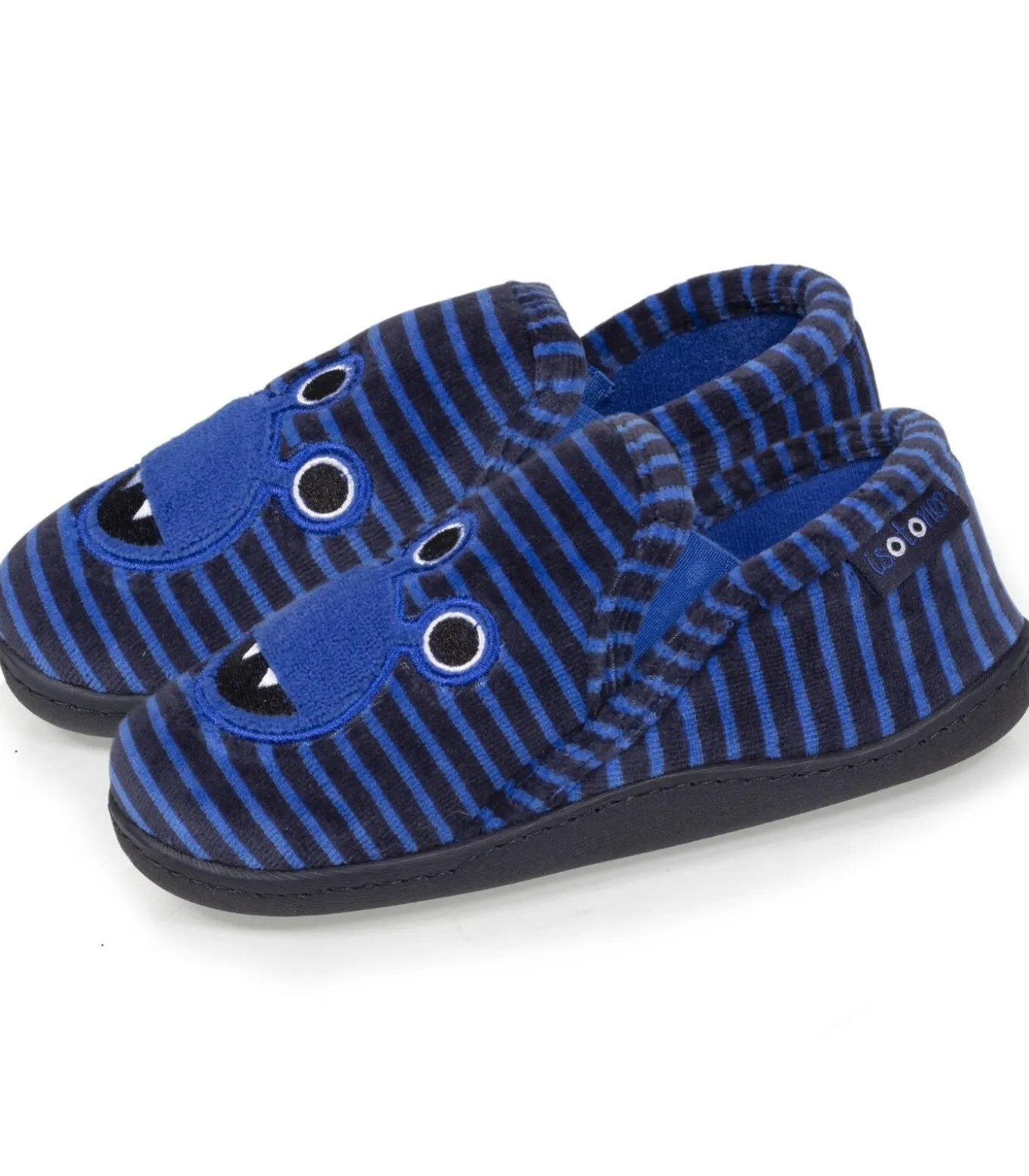 Deze velours mocassinslippers voor kinderen zijn uiterst comfortabel en hebben elastische banden voor gemakkelijk aan– en uittrekken en extra steun. Het gebruik van verschillende aanvullende schuimsoorten op deze kinderslofjes zorgt voor optimaal en langdurig comfort. Het gestreepte patroon en het schattige monsterborduursel zullen je kind in verrukking brengen. Deze kinderslofjes zijn machinewasbaar op 30°C.