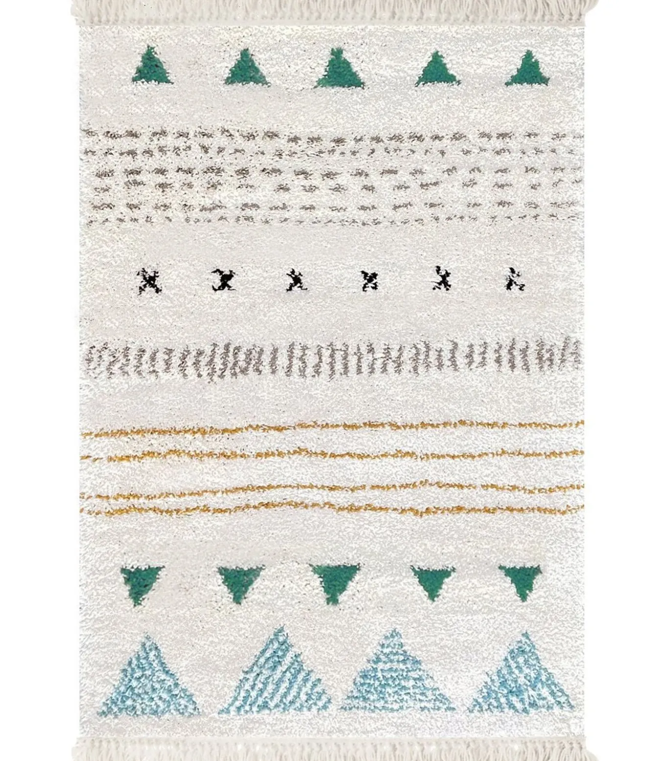 Een uniek tribal–geïnspireerd designtapijt met een trendy kleurenpalet dat de kinderkamer zal opfleuren. AFK Living vloerkleden gemaakt van polypropyleen – ook wel synthetische wol genoemd – hebben een zeer solide en robuuste afwerking. Zelfs bij intensief gebruik behoudt het oppervlak van dit vloerkleed zijn design, kleuren en hetzelfde zachte gevoel. Gemakkelijk schoon te maken, waterafstotend, antistatisch en antibacterieel, het is een ideale vezel voor tapijten. Dit vloerkleed is Oeko–Tex Standard 100 gecertificeerd en het bijbehorende ‘Confiance Textile’–label staat synoniem voor verantwoorde textielproductie. Het garandeert ook dat de vloerkleden vrij zijn van alle schadelijke producten Gemakkelijk te onderhouden, dit kindertapijt is zeer comfortabel en natuurlijk geluiddempend. < / Geweven vloerkleed. Anti–mijten. Het gebruik van synthetische wol voor een kindervloerkleed is niet triviaal. Tegenwoordig maken weeftechnieken het mogelijk om zachte, pluche en robuuste tapijten te creëren. Bovendien is het gemakkelijk te onderhouden en verkleurt het niet door blootstelling aan licht. Verzorgingstips: – Stofzuigen regelmatig zonder wrijven om stof en andere droge deeltjes van het tapijt te verwijderen – Gebruik geen harde borstel – Trek niet aan overtollige draad, maar knip deze af met een schaar – Behandel de vlekken met een licht vochtige doek of spons met water en een beetje neutrale zeep. Materiaal: 100% polypropyleen