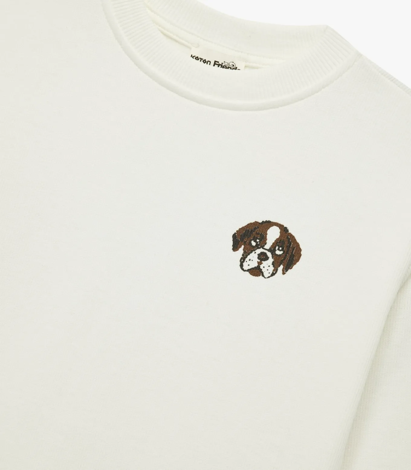 Deze kindertrui met lange mouwen valt op door zijn schattige hondendessin. Gemaakt van zacht katoen voor de hele dag comfort. De ronde hals biedt extra warmte voor koude dagen. Perfect voor spel en dagelijks gebruik, zonder bewegingsvrijheid te beperken.