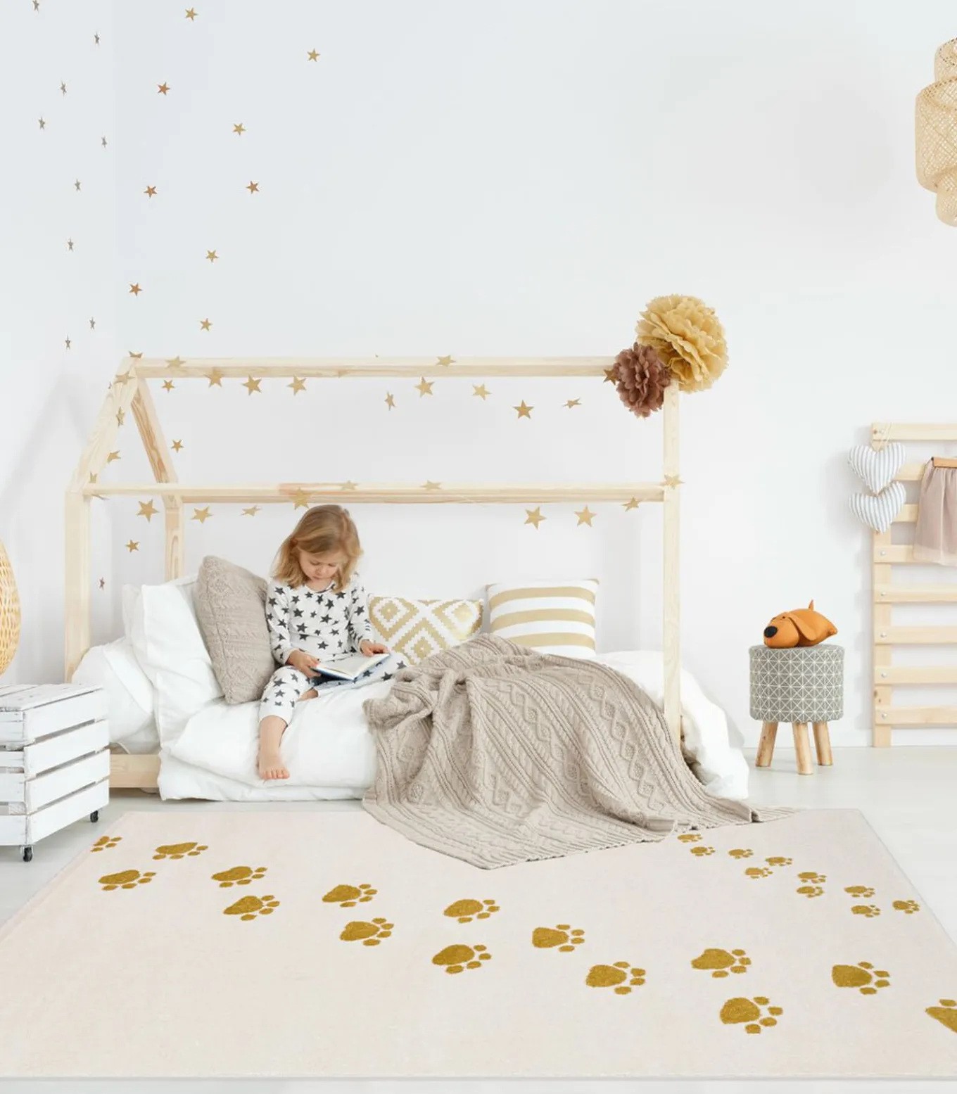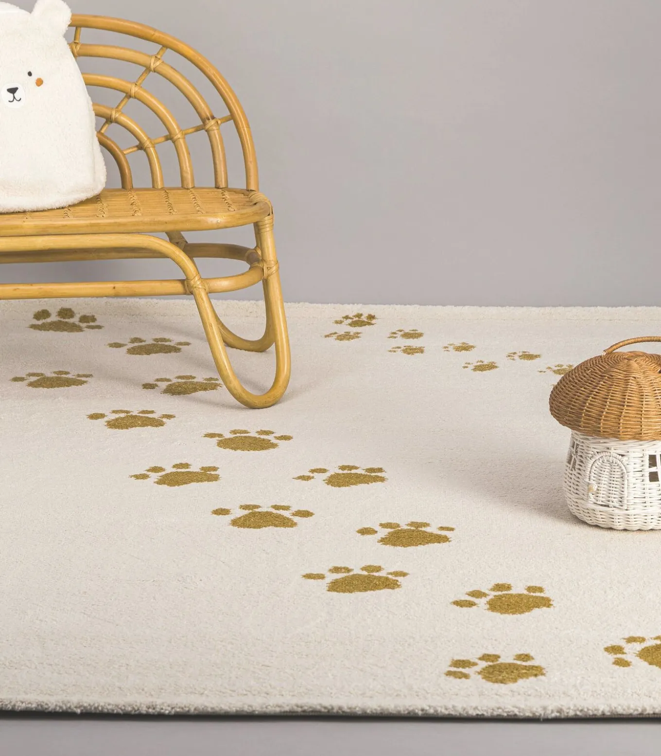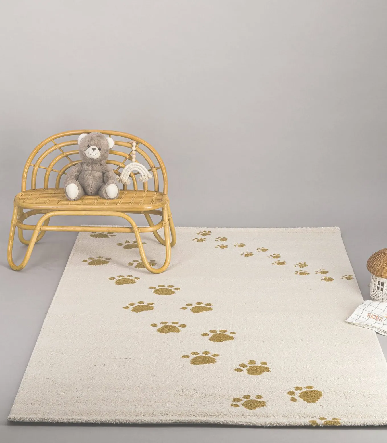 Een speels vloerkleed om de kleintjes wakker te maken die met plezier de voetafdrukken van moeder beer en haar baby zullen volgen. AFK Living vloerkleden van polypropyleen – ook wel synthetische wol genoemd – hebben een zeer sterke en stevige afwerking. Zelfs bij intensief gebruik behoudt het oppervlak van dit vloerkleed zijn design, kleuren en hetzelfde gevoel van zachtheid. Gemakkelijk schoon te maken, waterafstotend, antistatisch en antibacterieel, het is een ideale vezel voor tapijten. Dit vloerkleed is voorzien van het Oeko–Tex Standard 100 label en het bijbehorende “Textile Confidence” label staat synoniem voor verantwoorde textielproductie. Het zorgt er ook voor dat de vloerkleden vrij zijn van schadelijke producten. Dit kindertapijt is gemakkelijk te onderhouden, zeer comfortabel en van nature geluiddempend. Geweven tapijt. 100% polypropyleen. Anti–huisstofmijt.