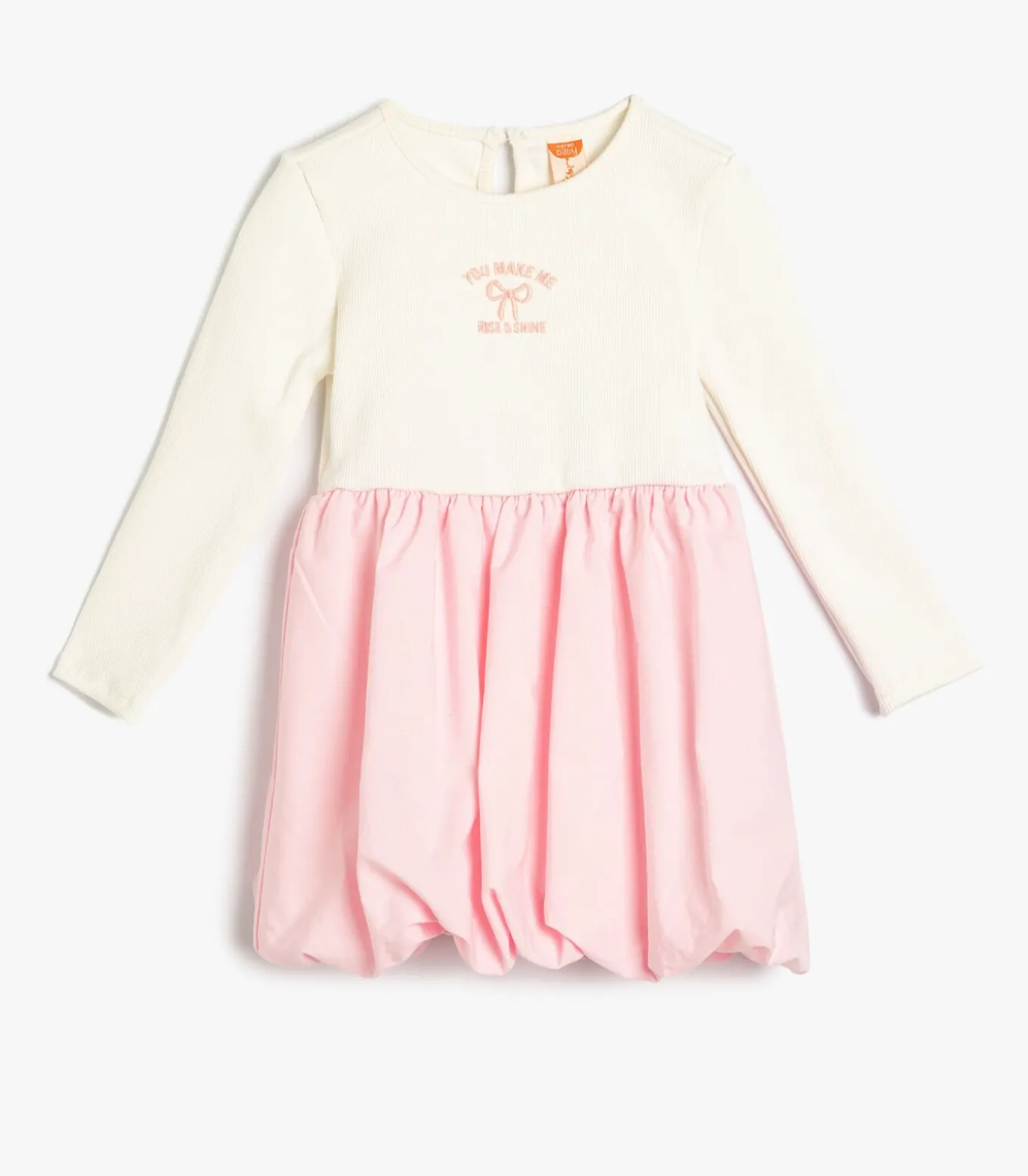 Bci–katoen geborduurd Wikkelborduurwerk Slogan/Tekst Normaal Ballonvorm zonder zak Knielengte Lange mouw Ronde kraag Jurk