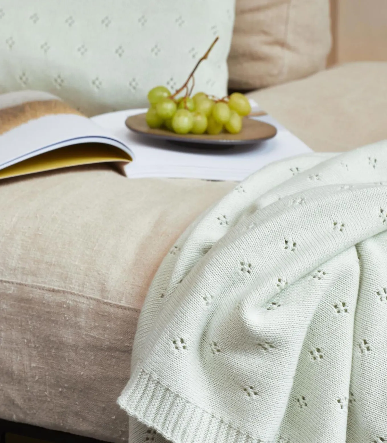 Zo lieflijk als plaid Ajour knitted zag je niet eerder. Doet een beetje Frans aan, is heerlijk zacht en zorgt in ee handomdraai voor een romantische uitstraling. Deze wil je!