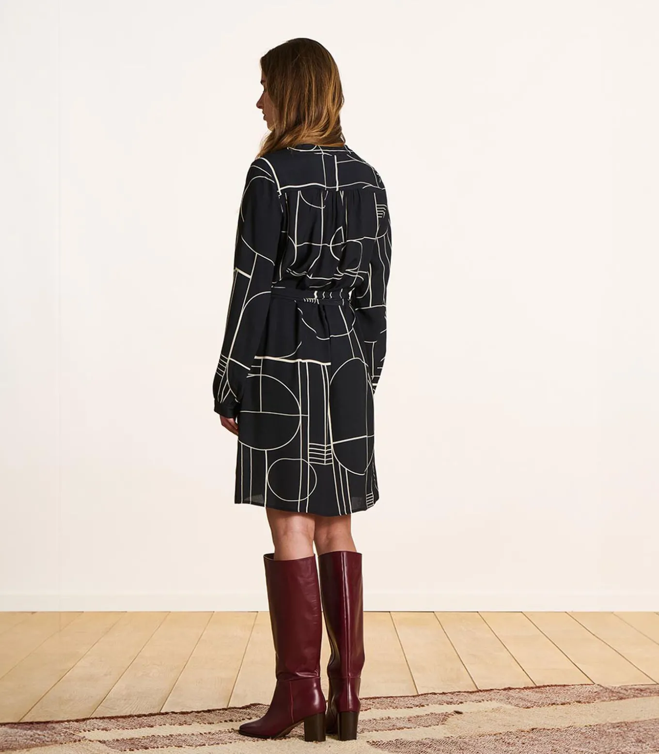 Korte jurk van fijne donkerblauwe mesh met borduurwerk