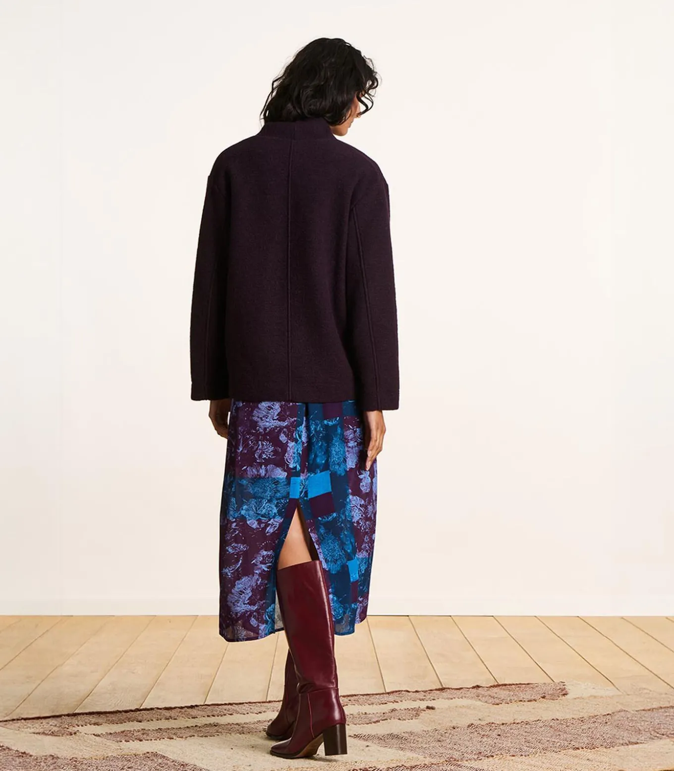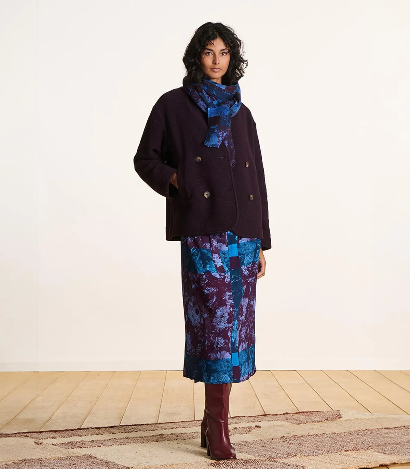 Korte jurk van fijne donkerblauwe mesh met borduurwerk