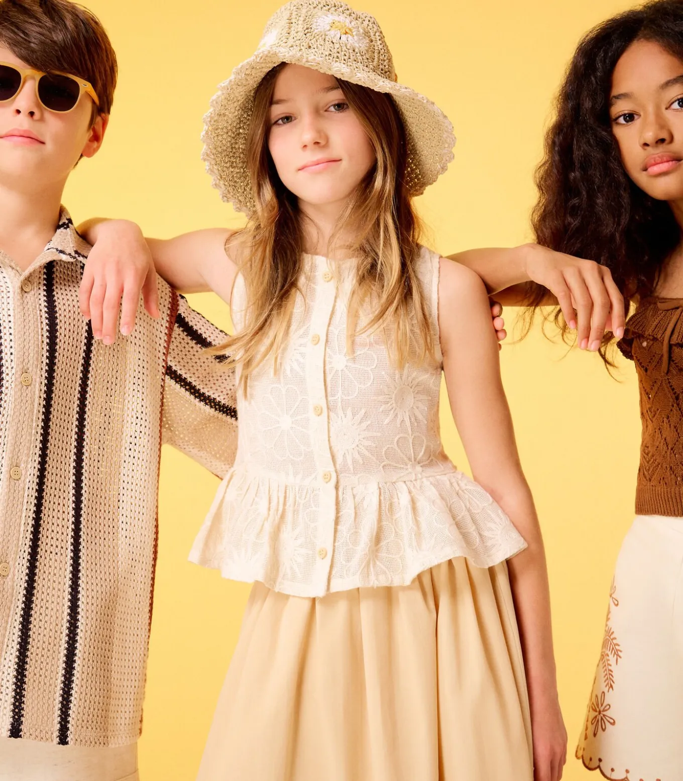 Lacy detail crew neck sleeveless buttoned cotton blouse.