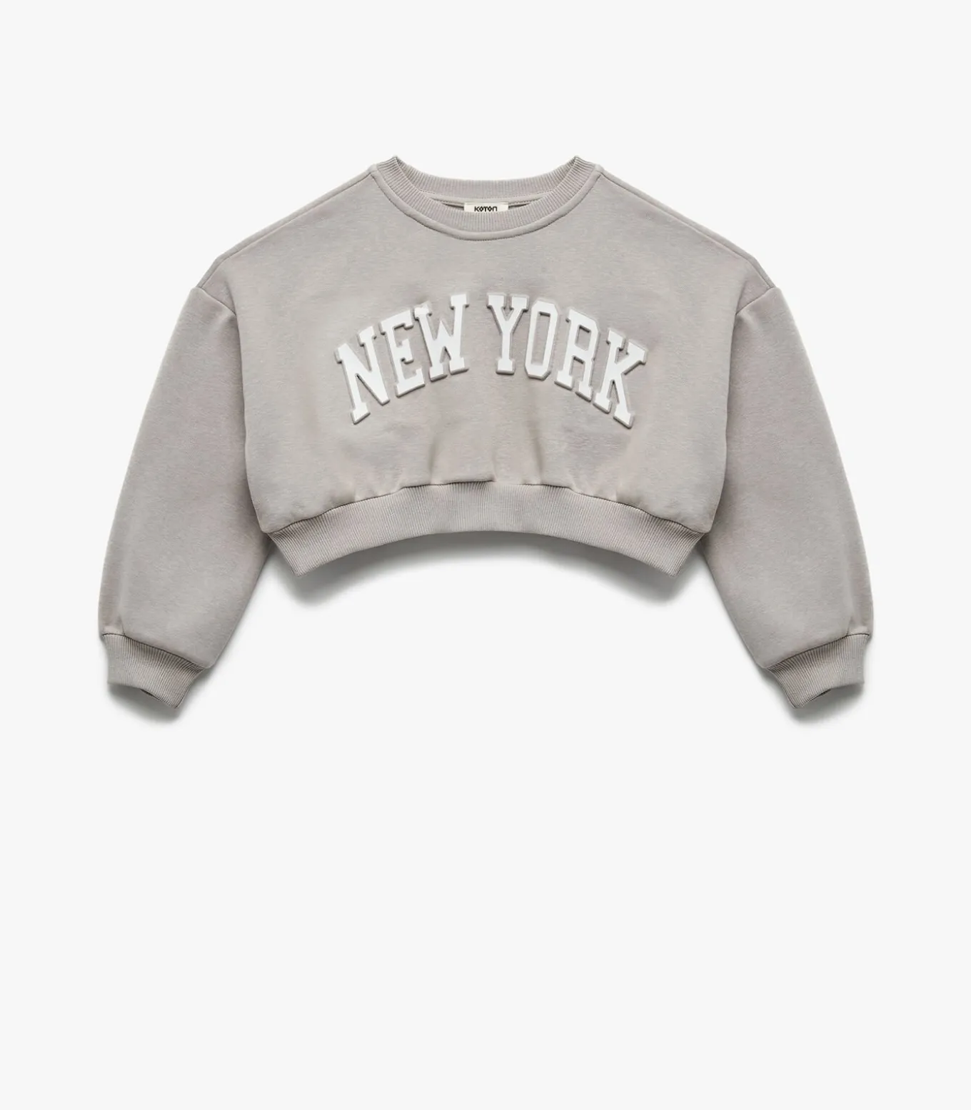 Koton Long sleeve crew neck soft interior printed crop sweatshirt.