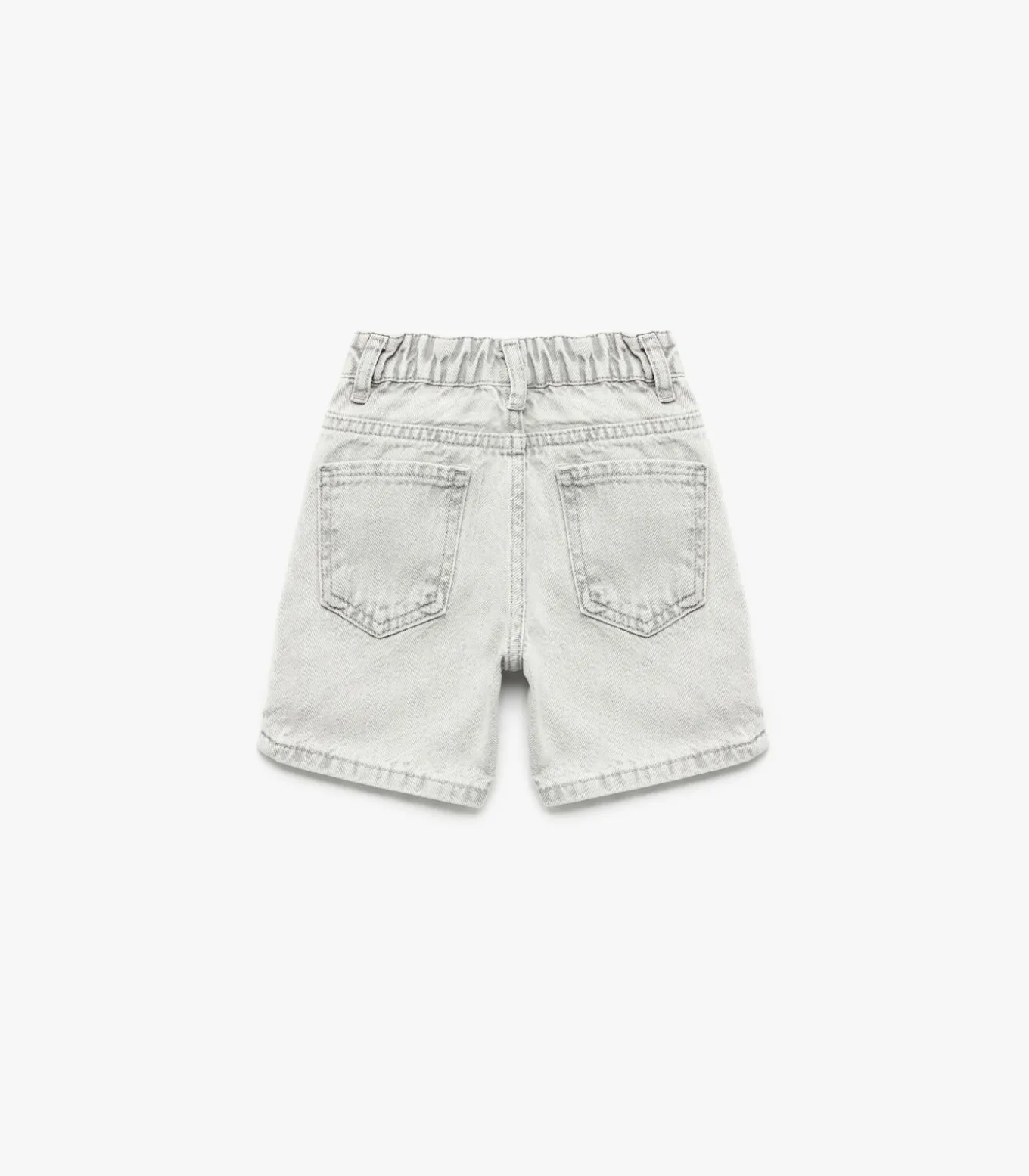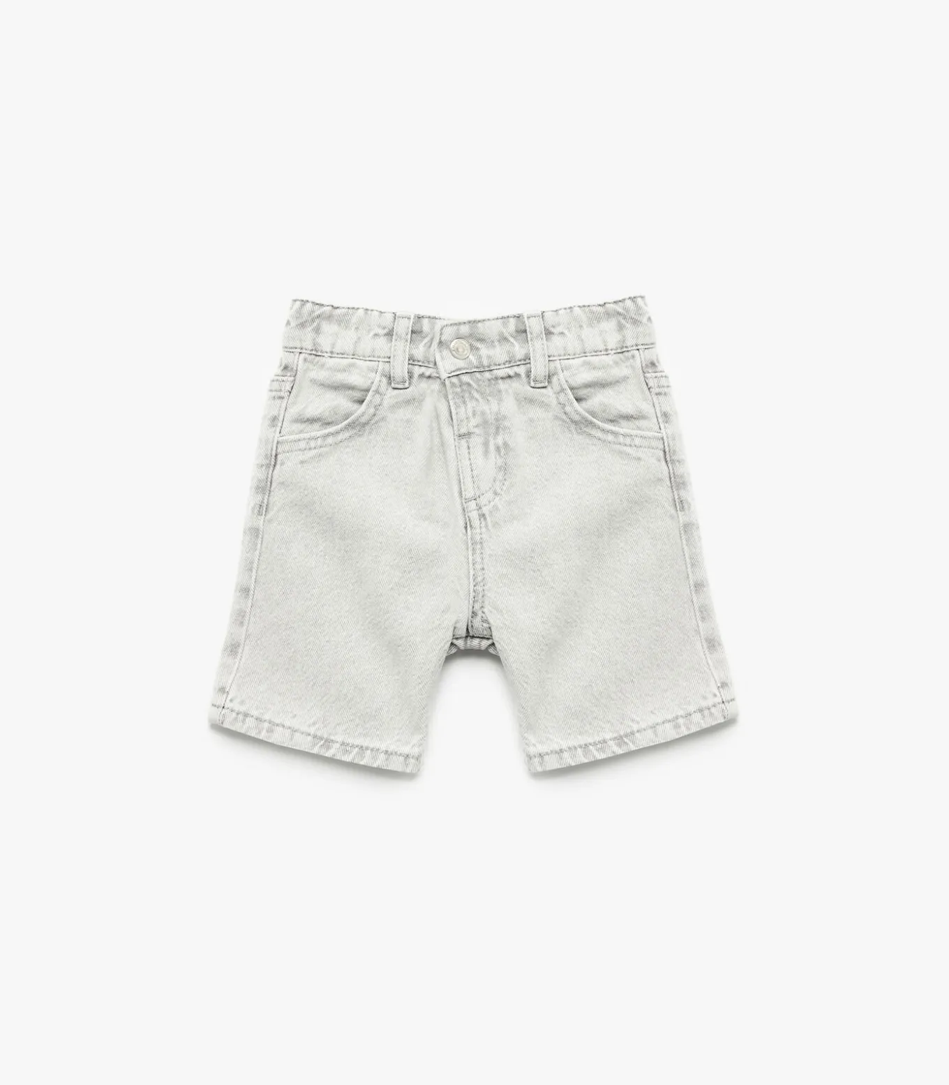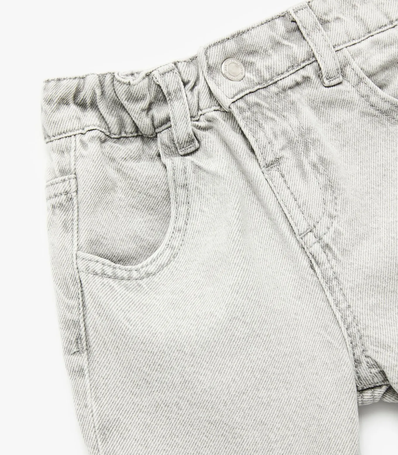 Elastic waist buttoned cotton denim shorts with pockets.