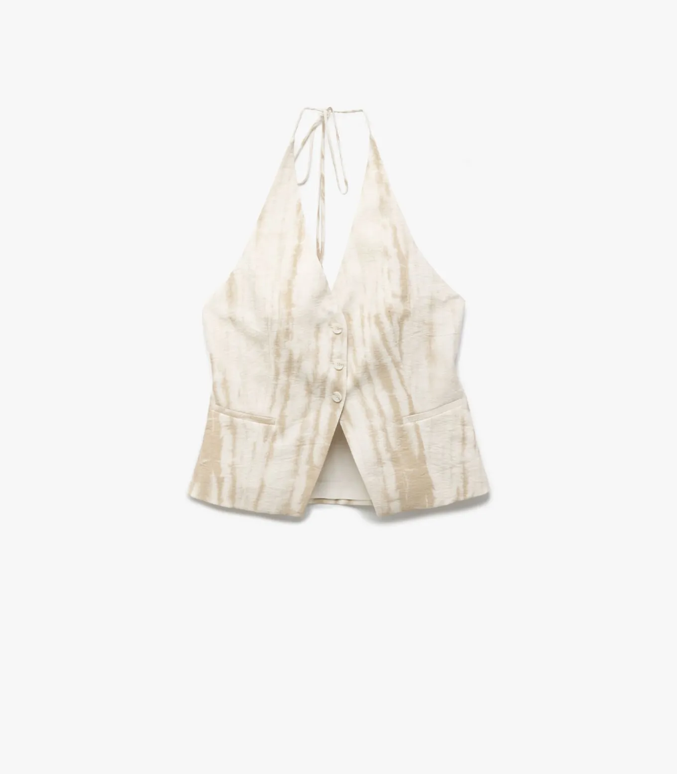 Viscose fabric buttoned V neck tie detail patterned vest.