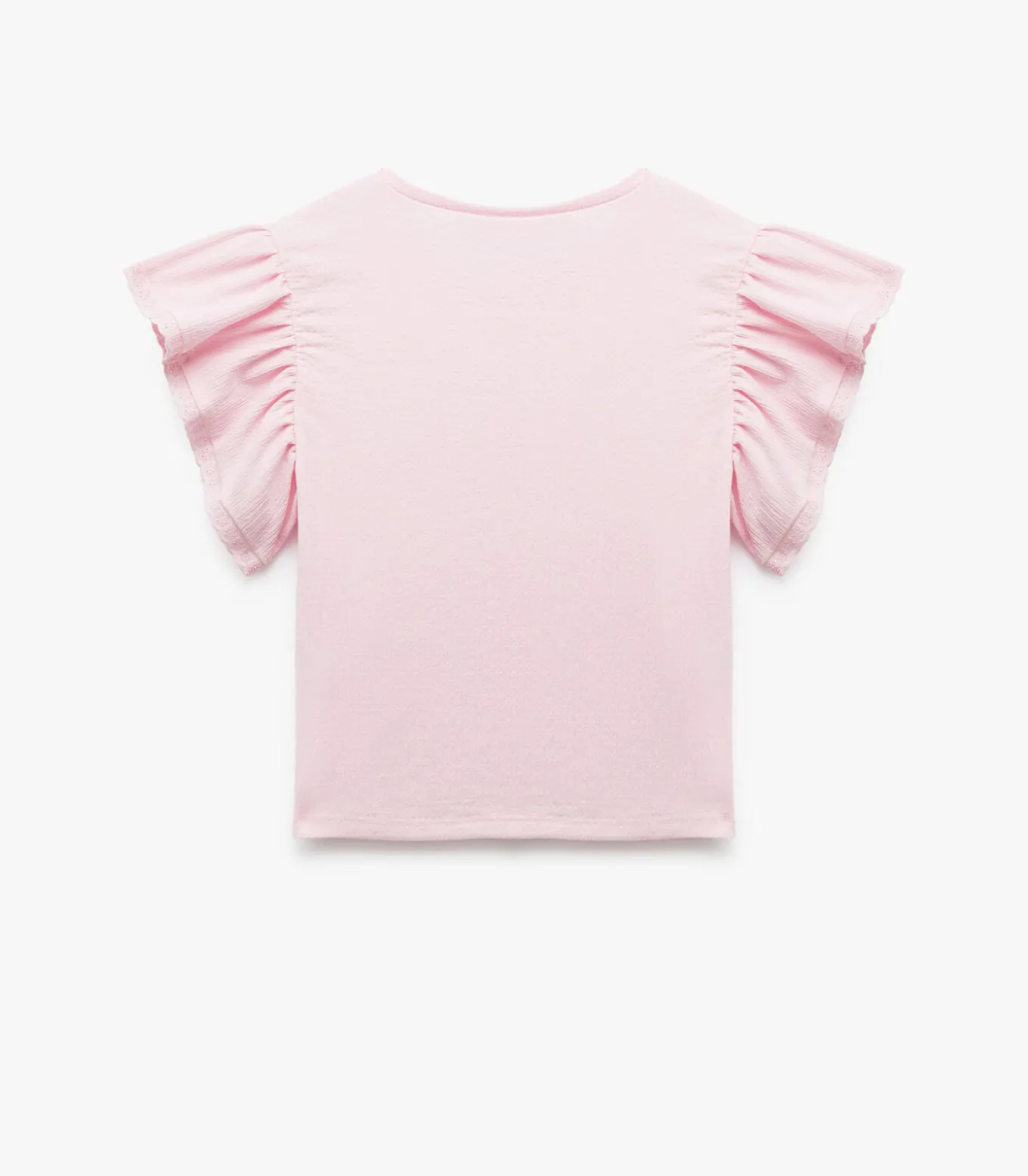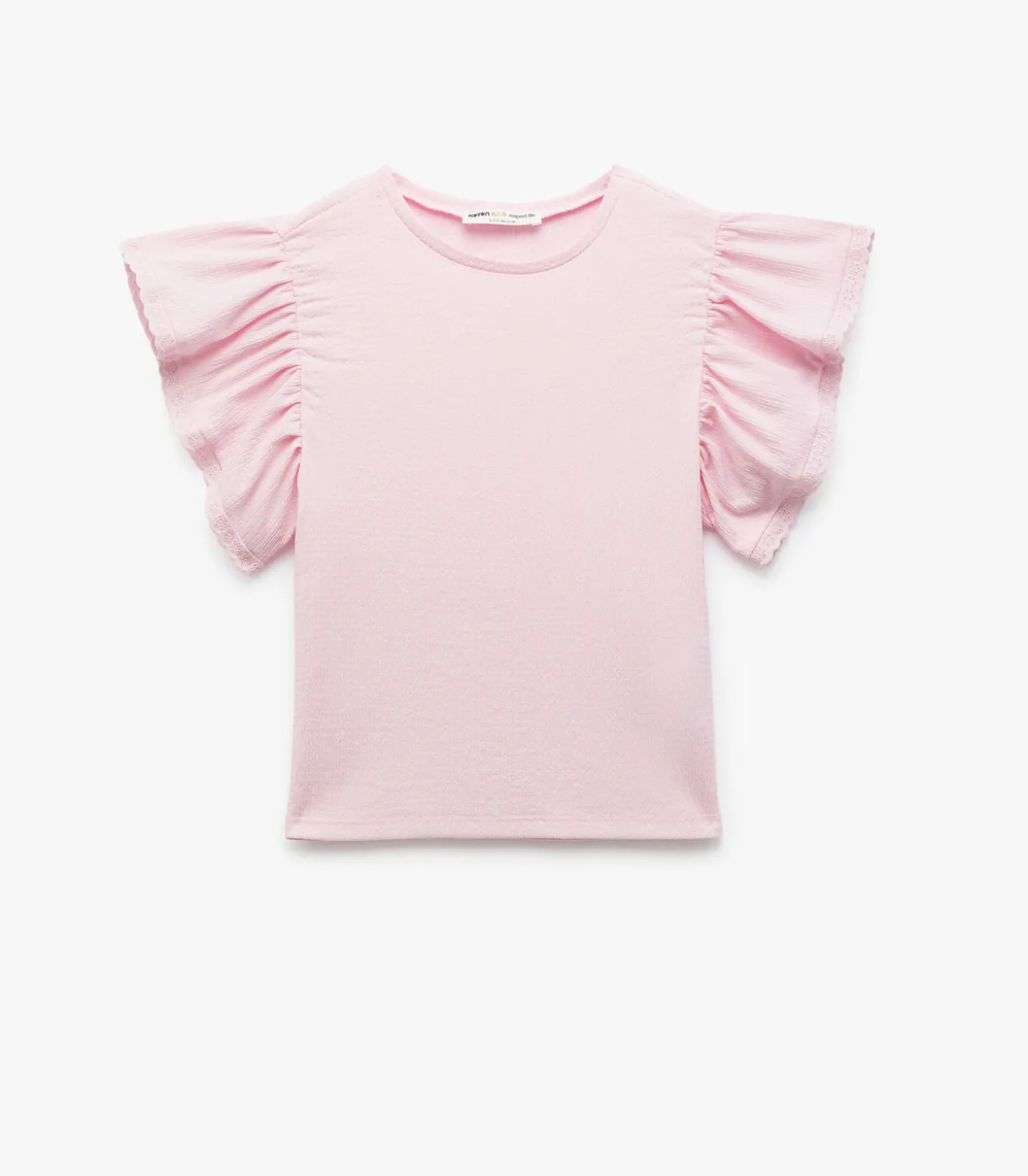 Crinkled short sleeve crew neck lace blouse.