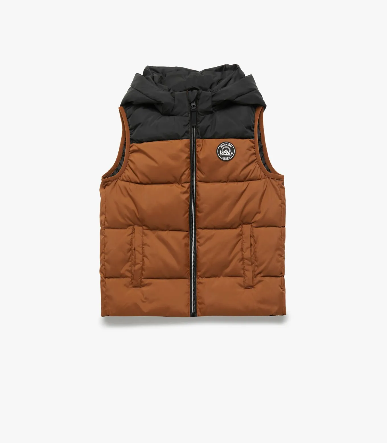 Koton Color block tag detail zipped hooded sleeveless puffer vest with pockets.
