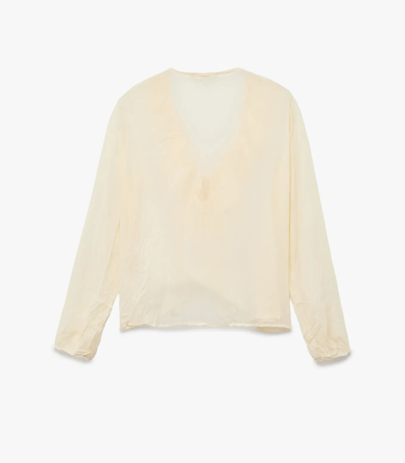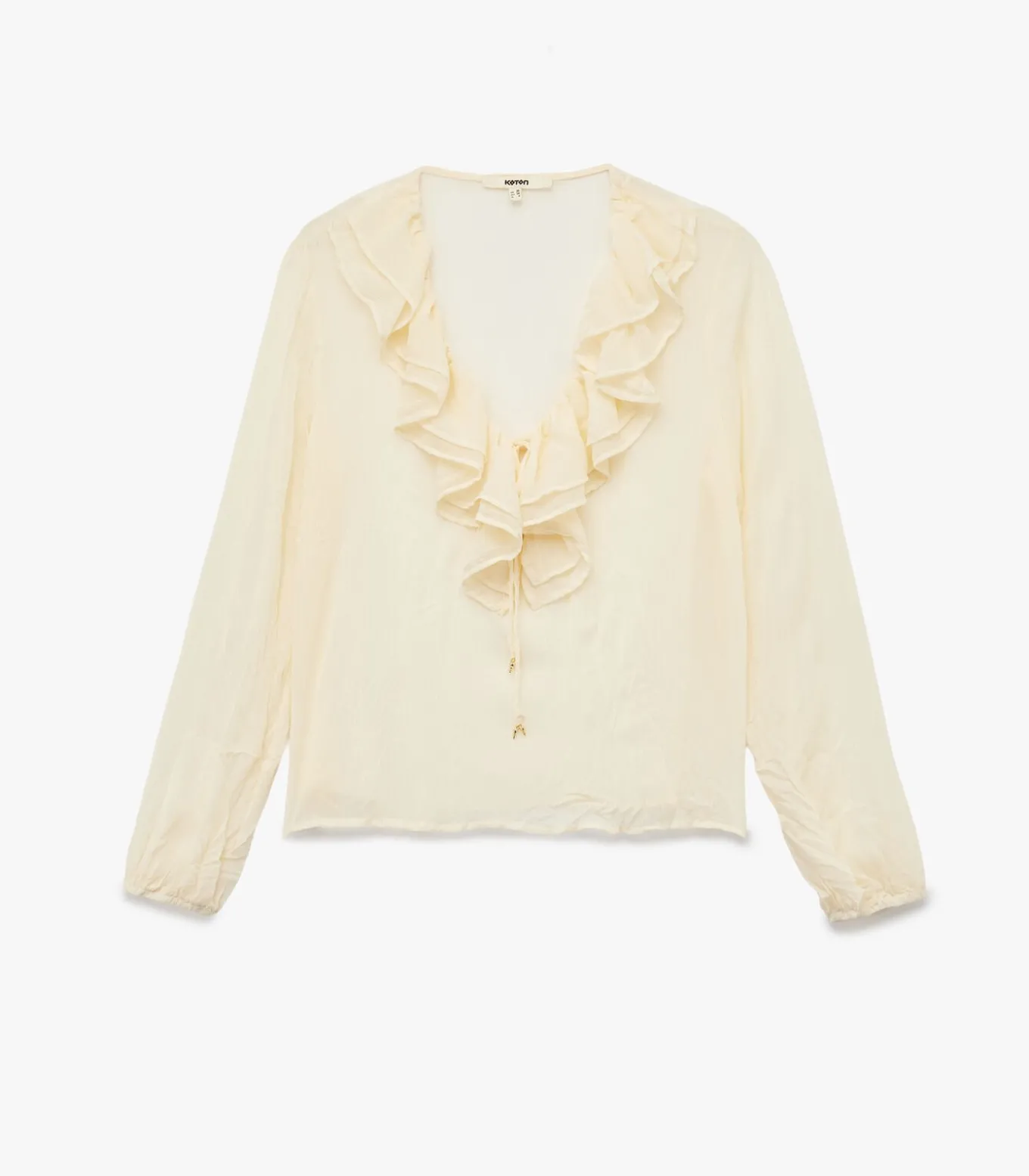 Koton Semi sheer long sleeve V–neck ruffle chiffon blouse.