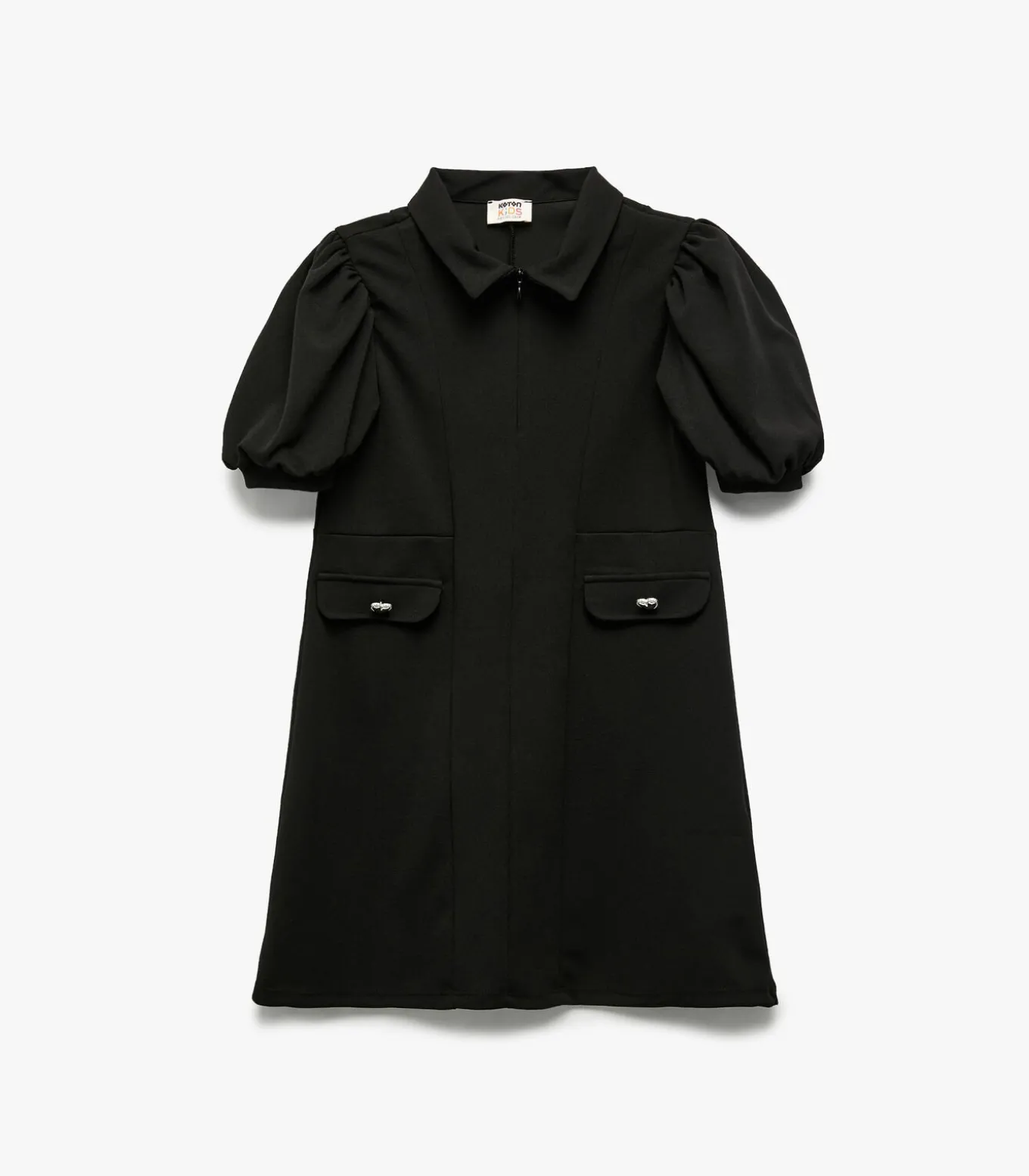 Koton Zipper detail balloon sleeve shirt neck dress.