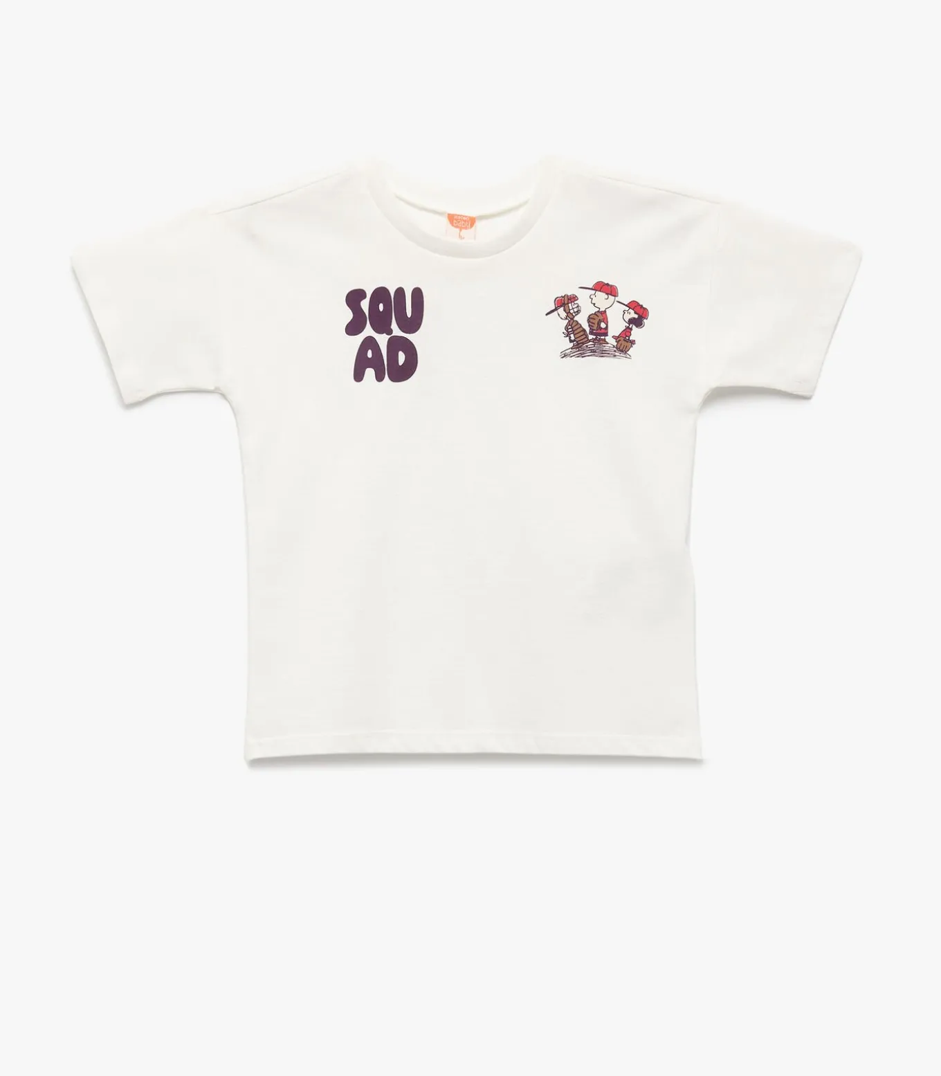 Licensed short sleeve crew neck cotton back printed Snoopy t–shirt. With this outfit, your baby is safe. Our products are tested against chemicals and designed mechanically in compliance with all safety principles. They do not contain dyestuff and heavy metals which may be damaging for health or any small and sharp pieces, straps or laces that may be ingested.