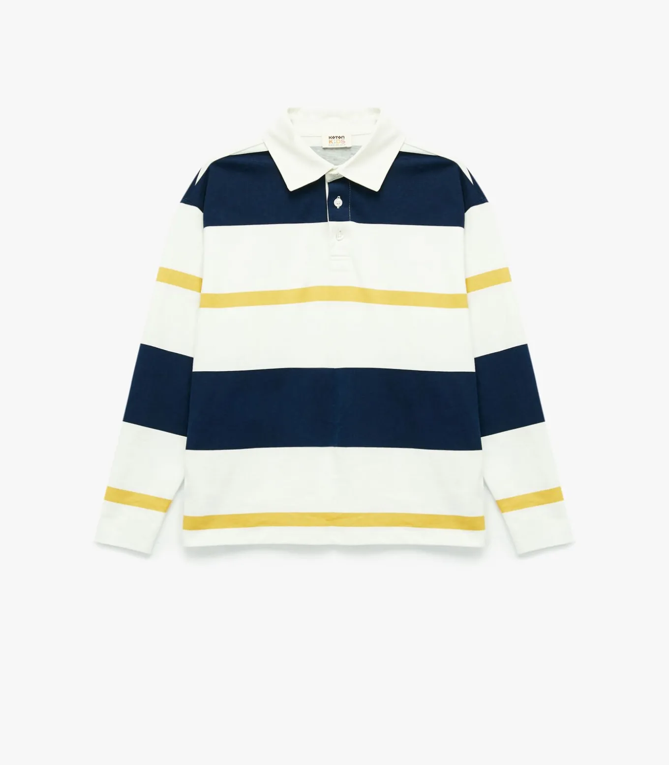 Koton Cotton long sleeve polo neck striped t–shirt.