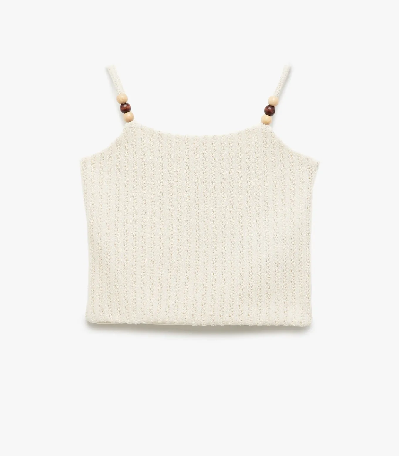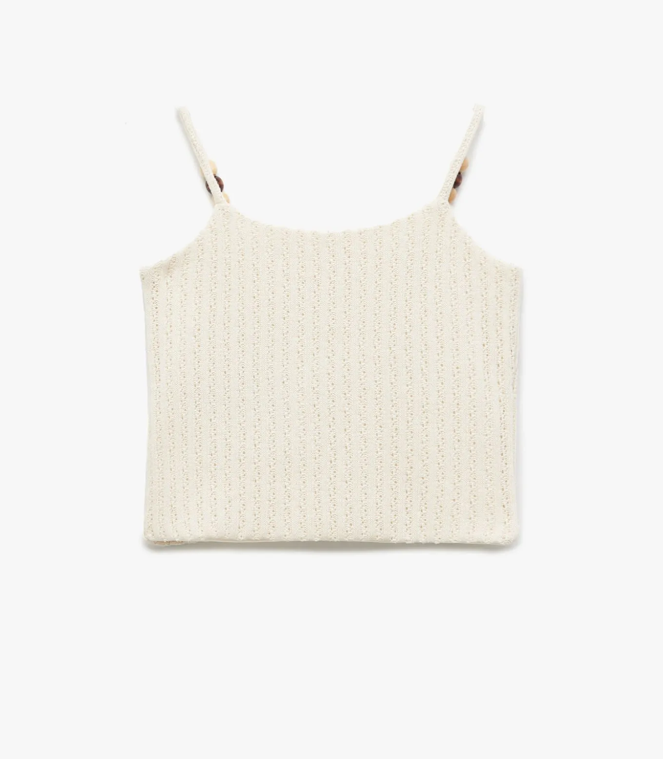 Bead detail thin strappy sleeveless textured tank top.