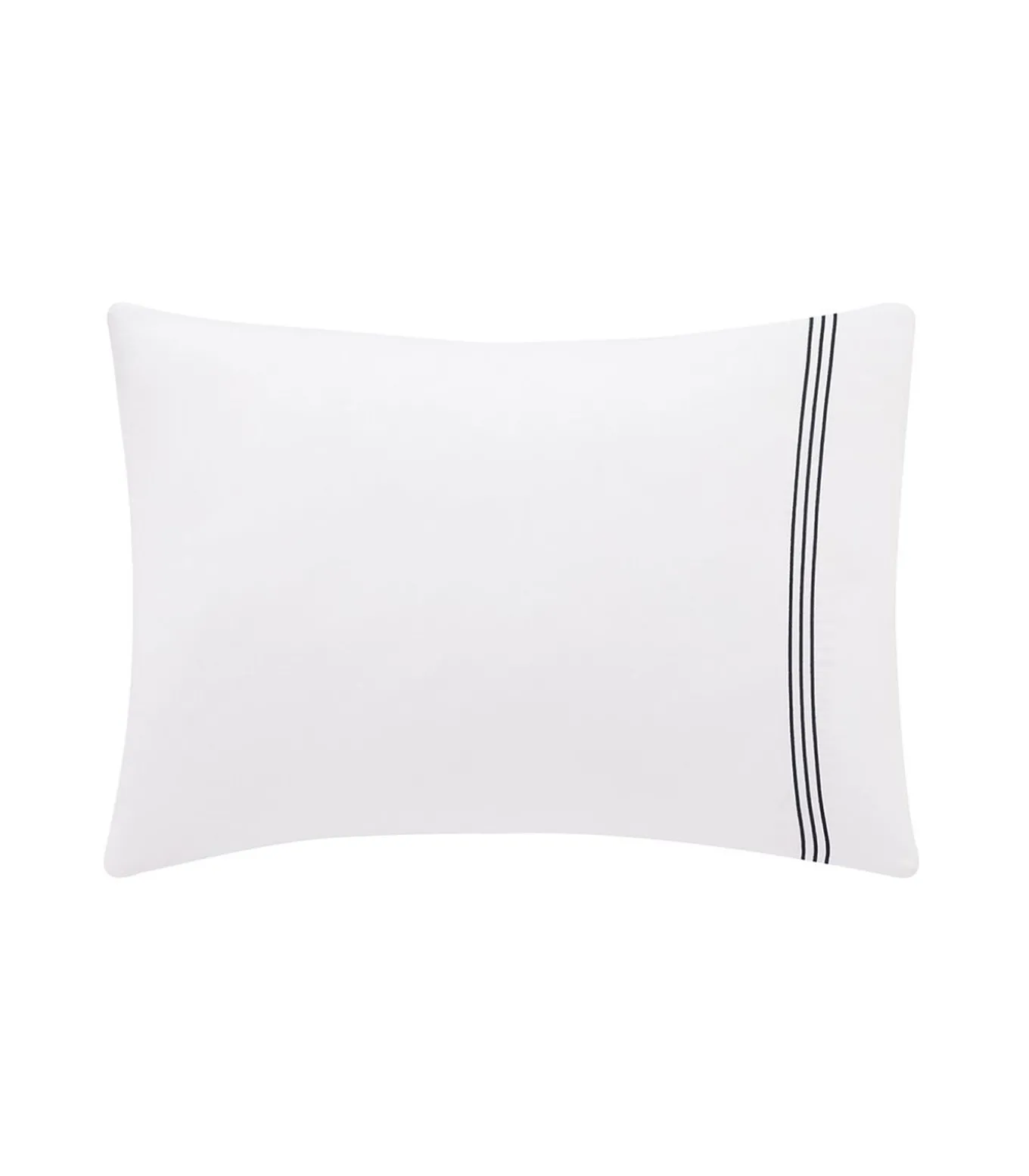 Voorkant effen wit met drievoudige marineblauwe festonsteek – Achterkant effen wit