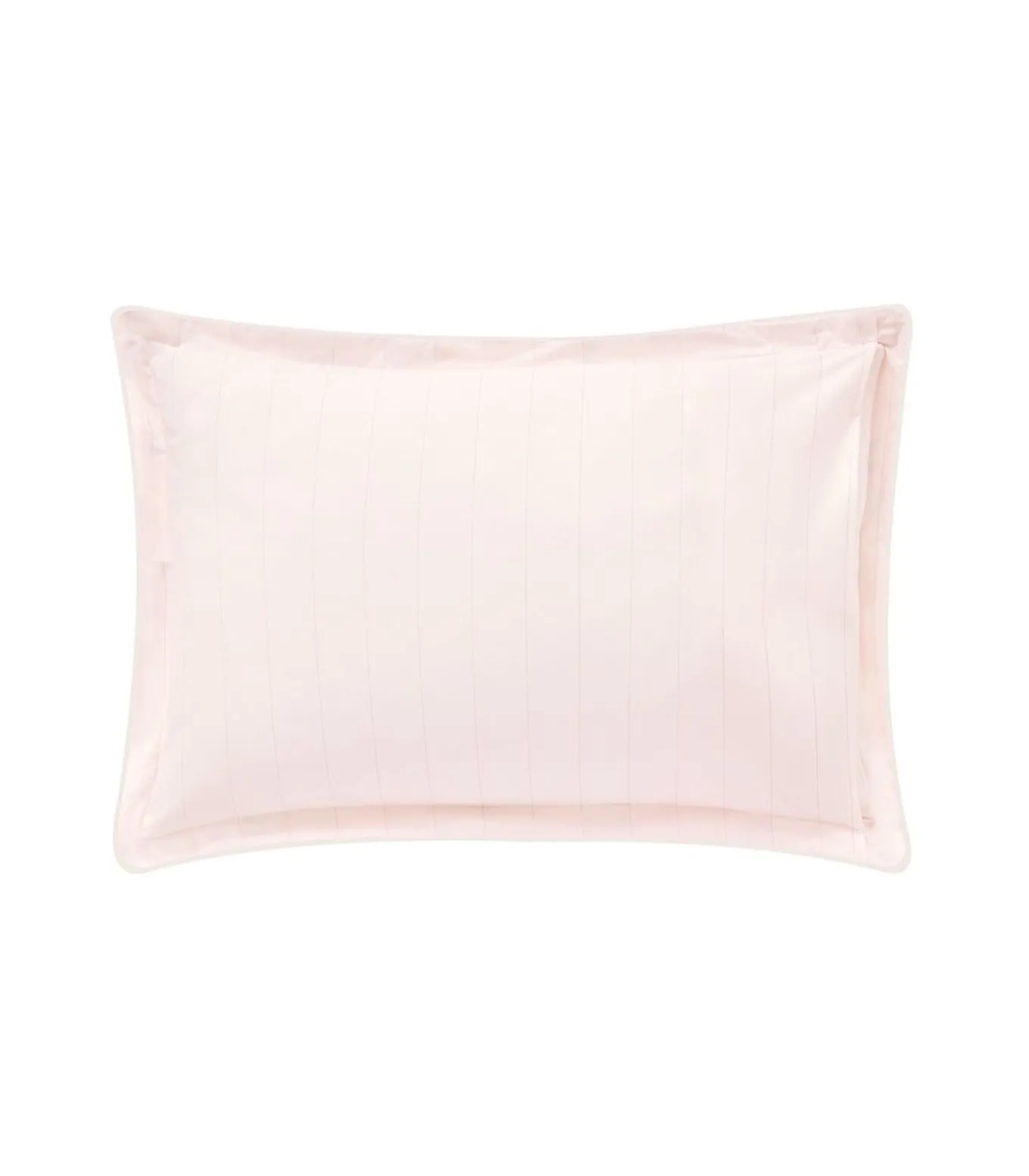 Print van kamperfoelie bloemen op poederroze achtergrondPrint van fijne verticale strepen op poederroze achtergrond