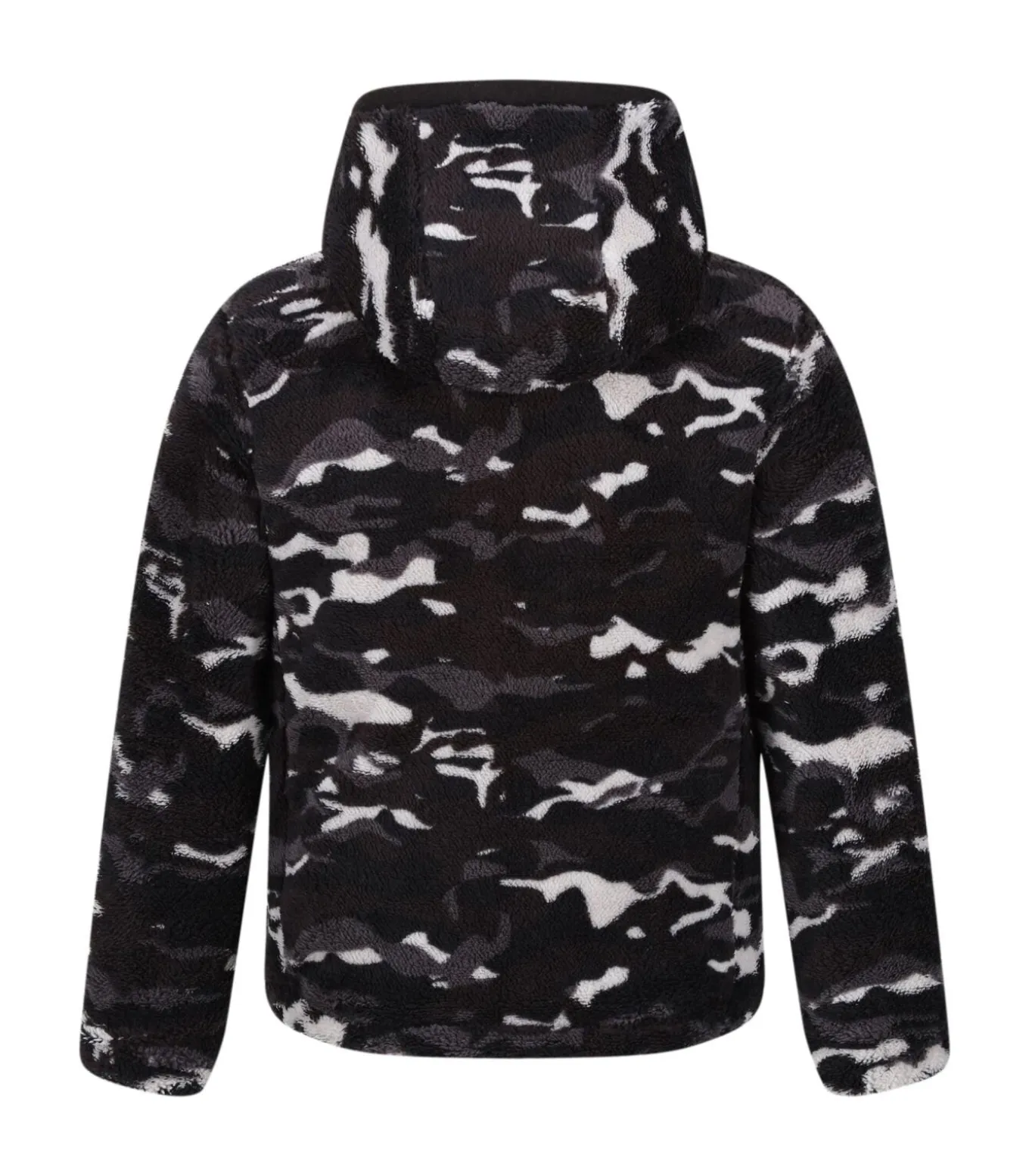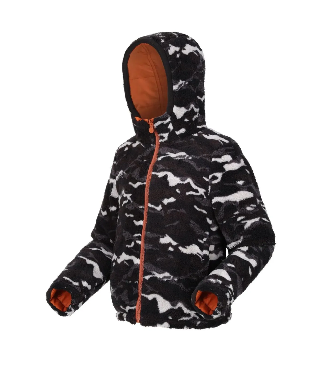 Deze technische beschrijving beschrijft een camouflage omkeerbaar kinderjack van Regatta. De jas heeft een 100% polyester constructie met een borg fleece soft touch buitenstof. De synthetische vezelvulling zorgt voor isolatie. De camouflageprint en het doorgestikte logo geven het ontwerp een detail. Met 200 gram per vierkante meter heeft de stof een duurzame waterafstotende afwerking waardoor hij sneldrogend, thermoregulerend, waterafstotend en weerbestendig is. De capuchon heeft lange mouwen met padding en reflecterende boorden. Uniek aan deze jas is dat hij omgekeerd kan worden. De vastgegroeide capuchon heeft stretchboorden voor comfort. Voor het opbergen zijn er twee zijzakken en twee onderzakken. De jas sluit met een volledige rits. Deze jas is gemaakt van gerecycled materiaal om duurzaamheid te ondersteunen.