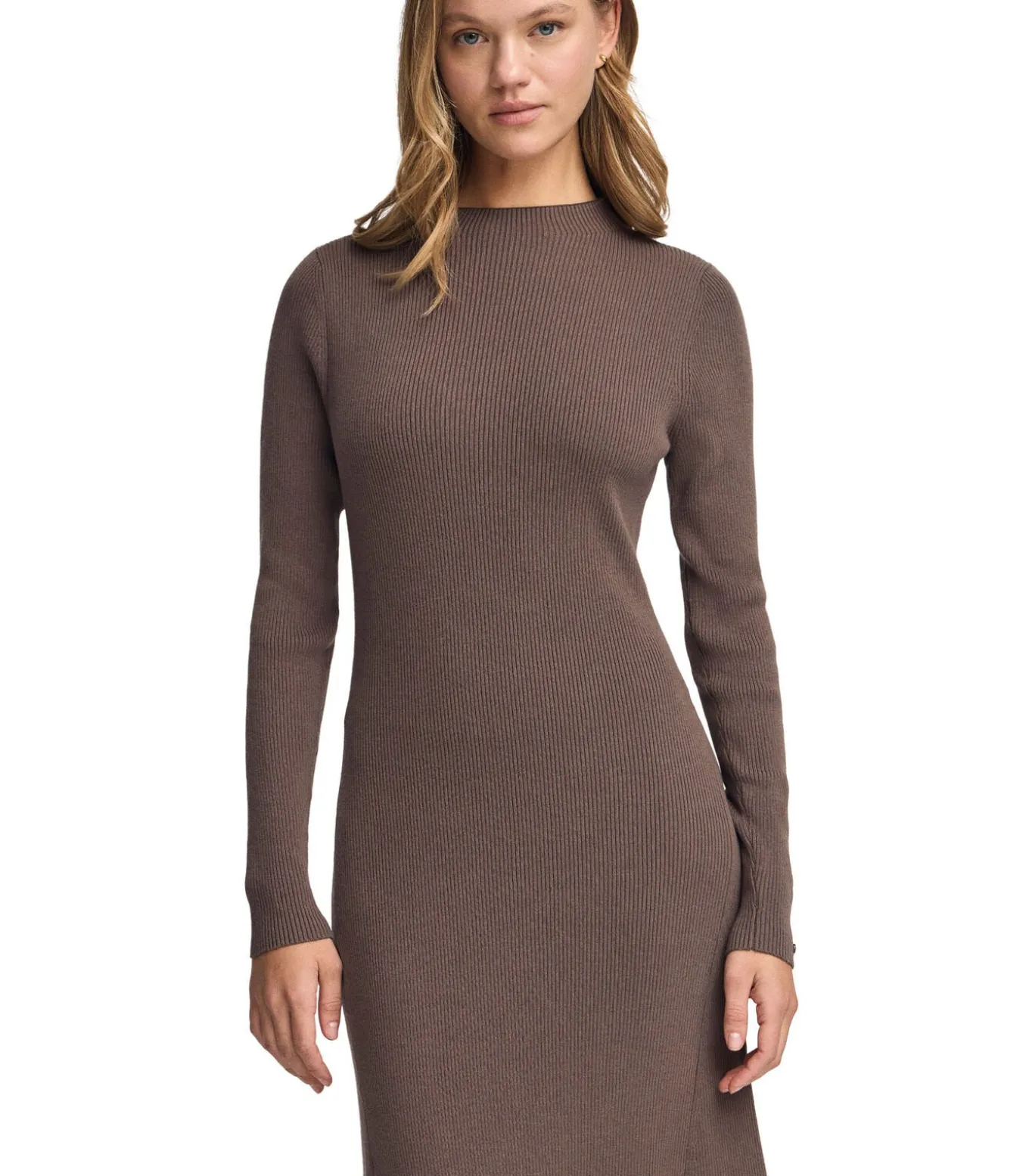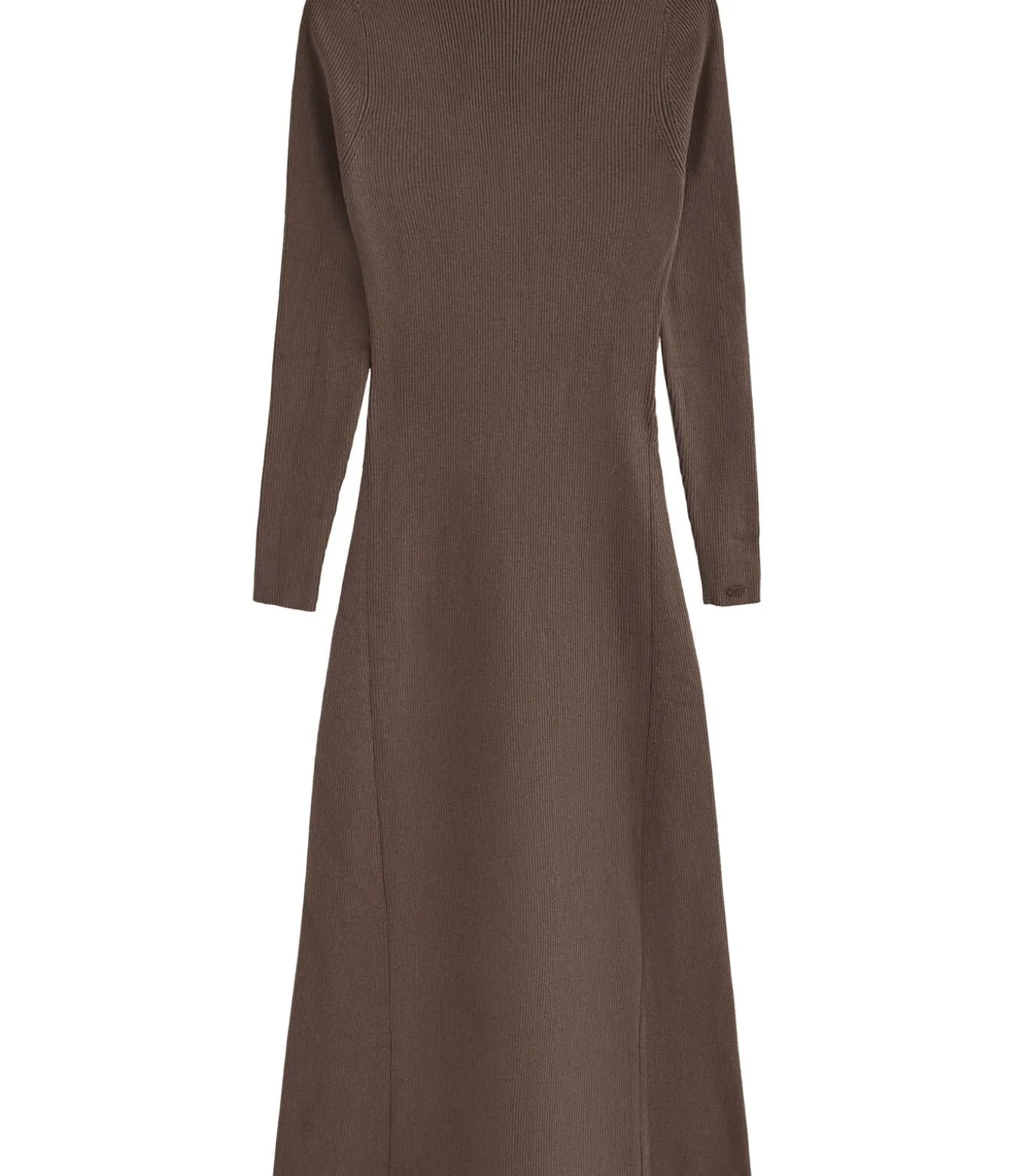 Lange jurk met lange mouwen en een Perkins–kraag. Gemaakt van een katoenmix. Een tijdloze, eenvoudige en elegante basic.