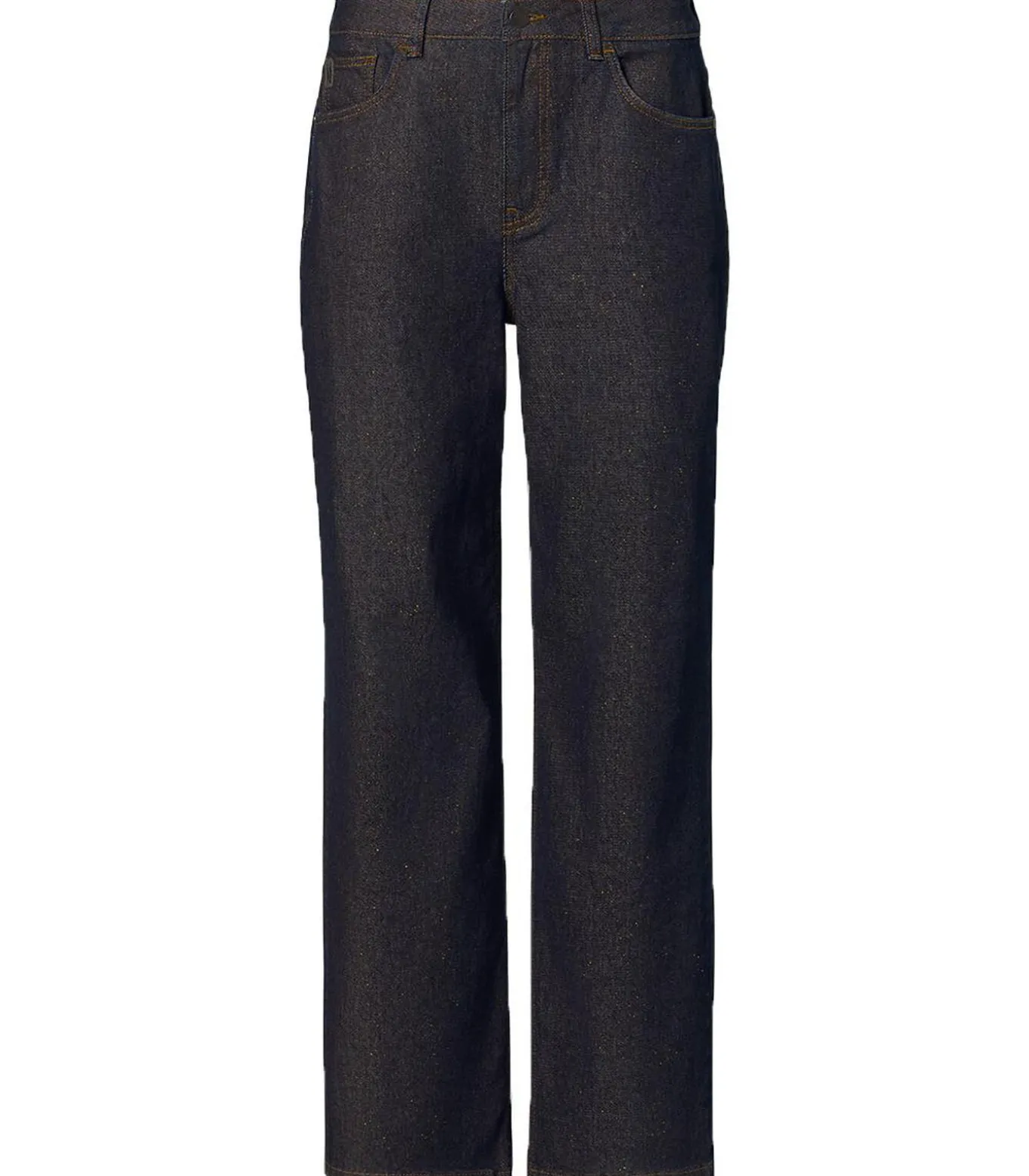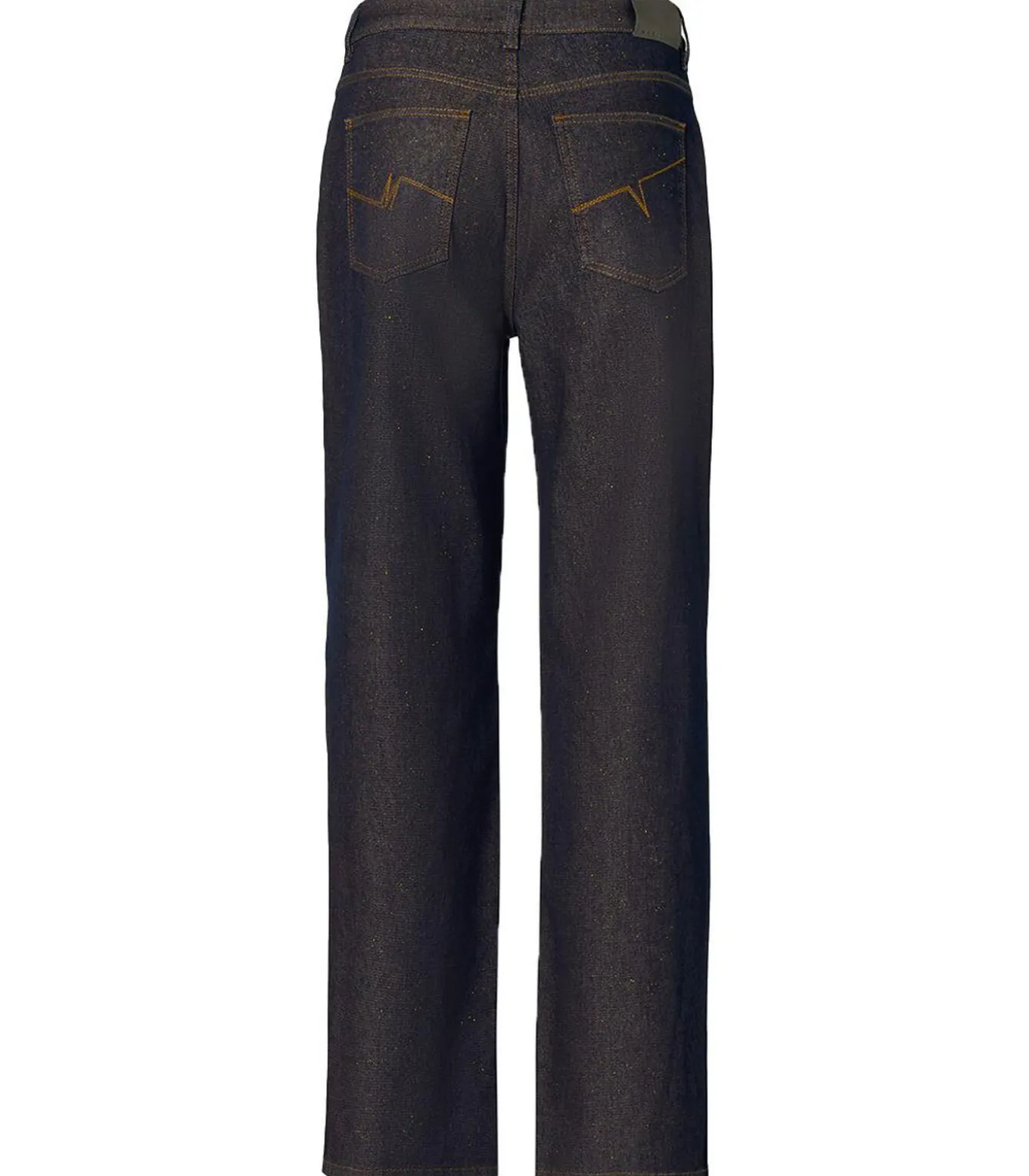 De Lienna broek in brons is een krachtige nieuwkomer binnen de denim lijn van Mart Visser. Deze donkerblauwe jeans met wijde pijpen is afgewerkt met een verfijnde bronzen coating, waardoor hij een chique en feestelijke uitstraling krijgt. Dankzij de hoge taille en de extra lange, wijde pijpen ontstaat een eigentijds silhouet, terwijl de aangesloten fit bij de heupen de broek vrouwelijk en flatterend houdt. De comfortabele katoenstretch zorgt voor een prettig draaggevoel, en met de vijf zakken behoudt de broek zijn klassieke jeanslook. Combineer deze broek met het bijpassende bronzen jack voor een complete denim co–ord die je gemakkelijk naar verschillende gelegenheden draagt. De Lienna broek is er ook in een zwarte glansvariant en een medium denim uitvoering, elk met een bijpassend jack. Dit is geen standaard jeans, maar een veelzijdige blikvanger die je keer op keer wilt dragen.