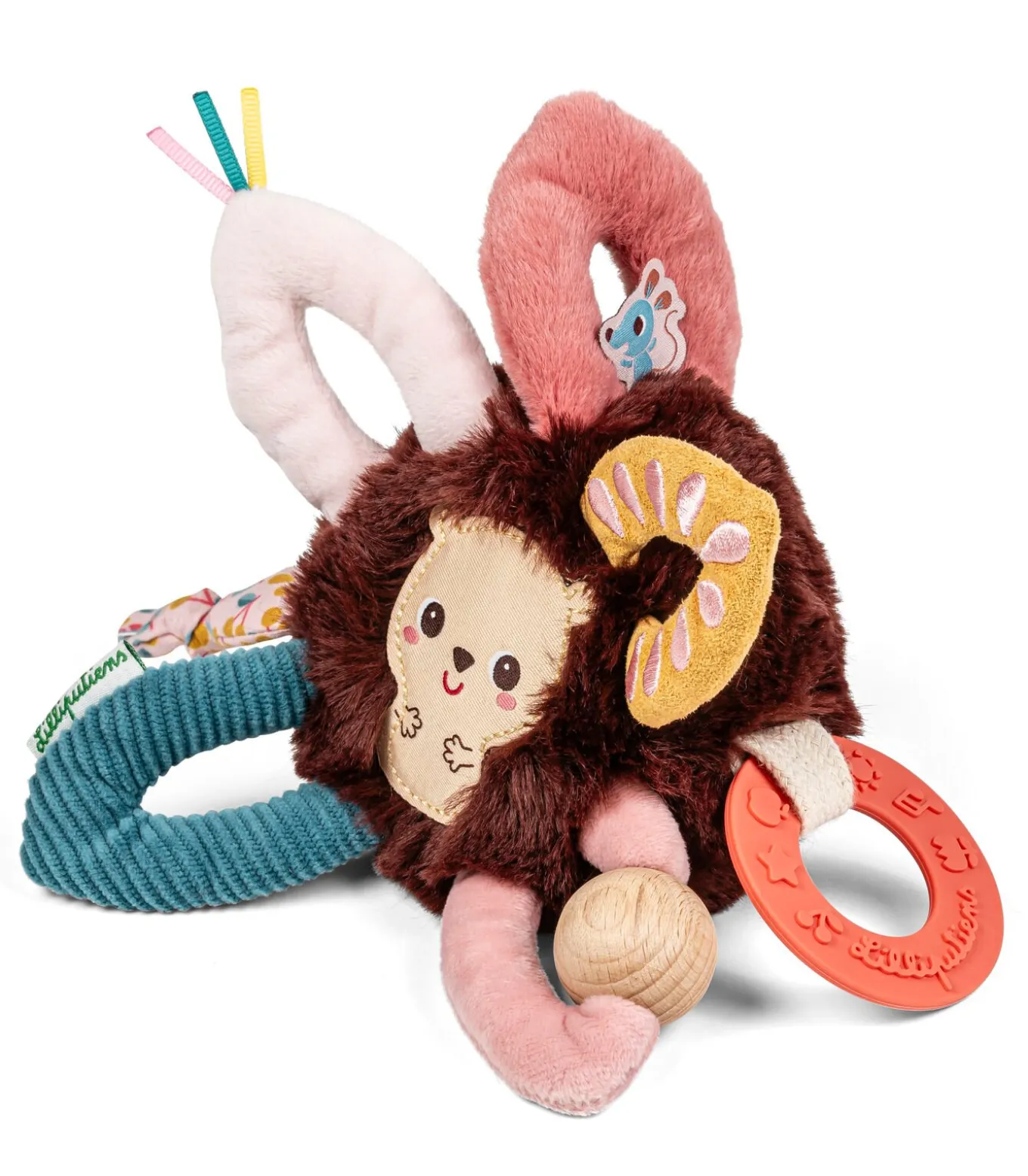 Lilliputiens sensorische bal baby speelgoed Leon de egel – grijprammelaarMet de sensorische bal van Lilliputiens, in de vorm van Leon de egel, begint voor baby’s een vrolijke ontdekkingsreis! Dit kleurrijke baby speelgoed prikkelt de zintuigen op een zachte manier en is speciaal ontworpen voor kleine handjes. De bal heeft vijf verschillende ringen, elk met een uniek gevoel, en allerlei leuke verlengstukken die het zicht, de tast en het gehoor stimuleren. Leon de egel is heerlijk zacht en nodigt uit om te grijpen, te voelen en te ontdekken. De verschillende materialen, borduursels en prints zorgen voor een verrassende ervaring bij elke aanraking. Dankzij de siliconen bijtring kan je kleintje bovendien zijn pijnlijke tandvlees verzachten tijdens het doorkomen van de tandjes. Deze grijprammelaar is makkelijk vast te pakken en ideaal voor baby’s vanaf de geboorte tot ongeveer 3 jaar. Laat je kindje samen met Leon op avontuur gaan en spelenderwijs de wereld ontdekken!Extra informatie Stimuleert tast, zicht en gehoor Met siliconen bijtring voor doorkomende tandjes Geschikt voor baby’s vanaf de geboorte Speciaal ontworpen voor kleine handjes