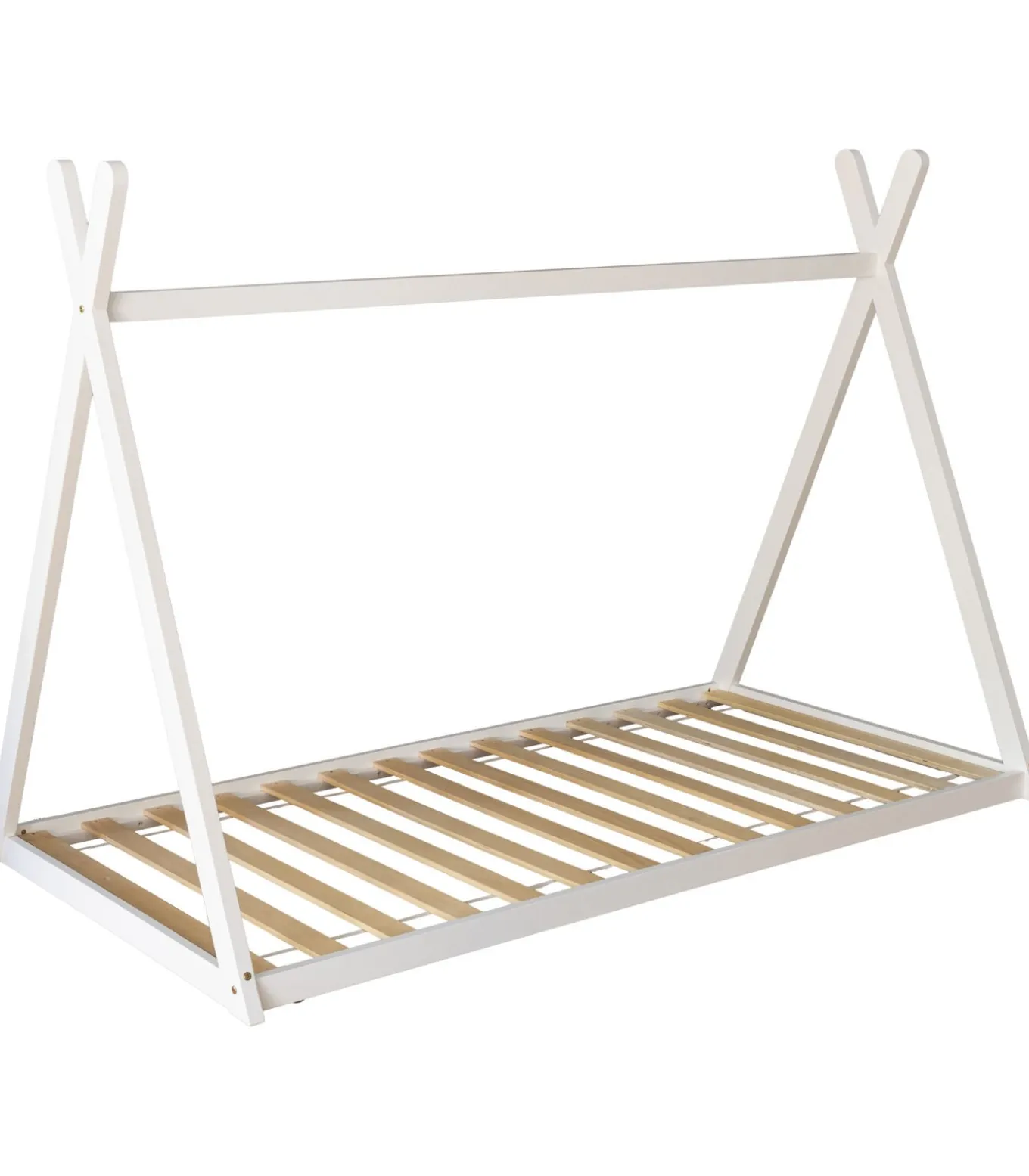 Het VALENTIN tipi bed, gemaakt van dennenhout, voegt een vleugje zachtheid toe aan de slaapkamer van je kind. Met zijn multiplex latten biedt het een goede ondersteuning voor een rustige nachtrust. Het speelse tipi design voegt een origineel tintje toe aan de inrichting en creëert een knus en geruststellend hoekje. Kinderen zullen dol zijn op de unieke stijl, die verbeelding en spel stimuleert!