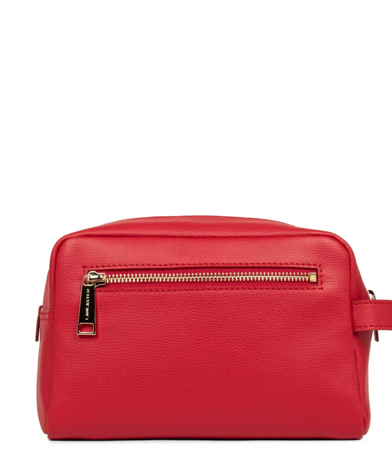 Deze toilettas ZoéxLancaster is gemaakt van kalfsleer met een korrelstructuur. Hij heeft een groot binnenvak, een buitenvak met rits en een buitenvak met een grafische klep, die de identiteit van Zoé weerspiegelt. Het zal je ideale metgezel zijn voor een lang weekend of een reis.