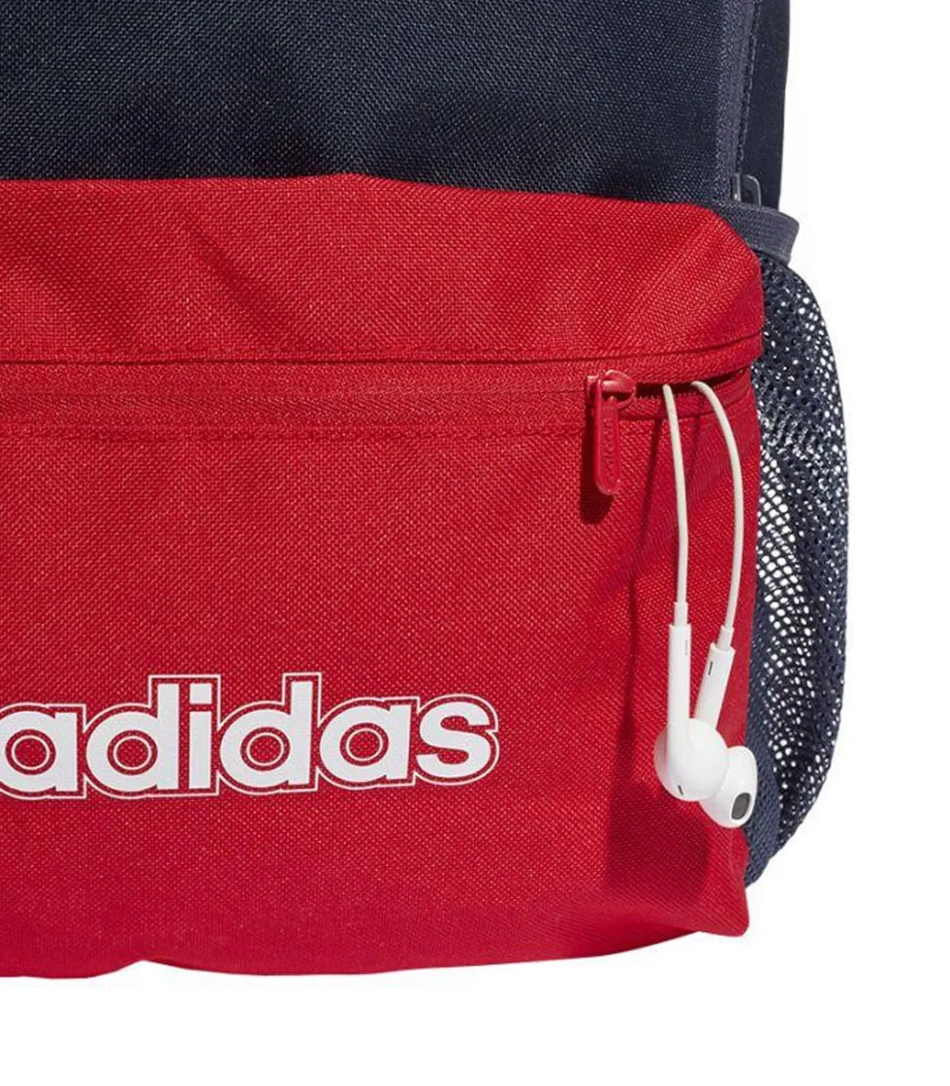 Adidas LK – Donkerrood Rugzak gemaakt van 100% hergebruikbare polyester materialen voor de buitenkant en 100% recycled polyester voor de vulling en voering. Deze rugzak meet 35 centimeter in hoogte, 25 centimeter in breedte en heeft een inhoud van 13.2 liter. Met een diepte van 11 centimeter biedt deze rugzak amper ruimte voor je persoonlijke bezittingen. De rugzak telt vier zakken: een voorzak, een rits, een zijzak en een gaaszak. Daarnaast beschikt de rugzak over één hoofdcompartiment en een verstelbare schouderriem met contrast en het Adidas logo in het ontwerp. De rugzak wordt gevestigd door een ritssluiting.