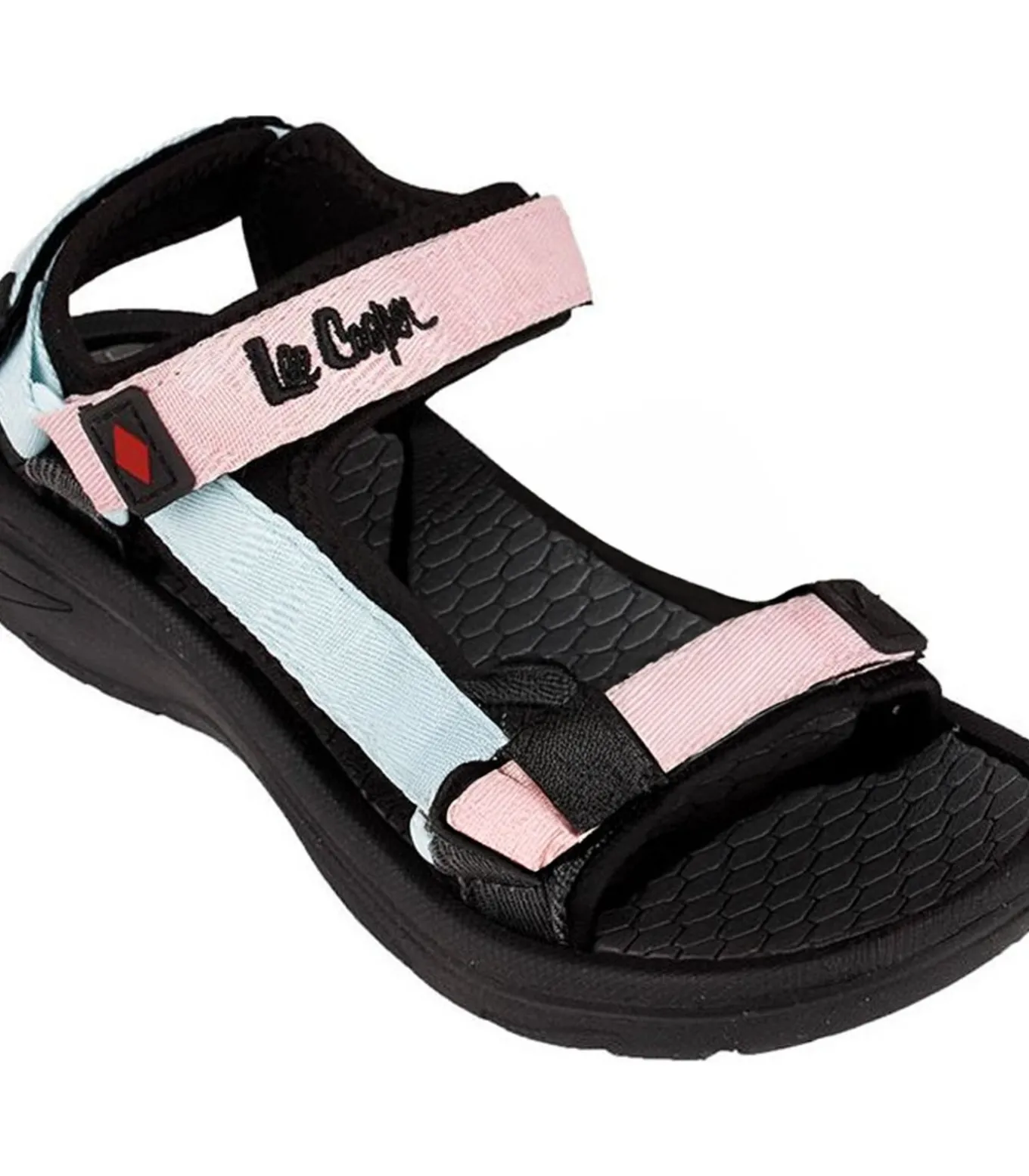 Lee Cooper–merk boodt u de logo’d donkerblauwe zandalen. Deze sandalen hebben een voorgevormd, geprofileerd en schokabsorberend binnenzool gemaakt van schuim. Het buitenzool bestaat uit rubber met profiel. Deze sandalen zijn rechtvlak. Hun ontwerp is in contrast met het logo. Ze hebben een 3 Touch Fastening band die verstelbaar is. Deze zandalen zijn duurzaam en lichtgewicht. Het binnenzool heeft antislip–eigenschappen.