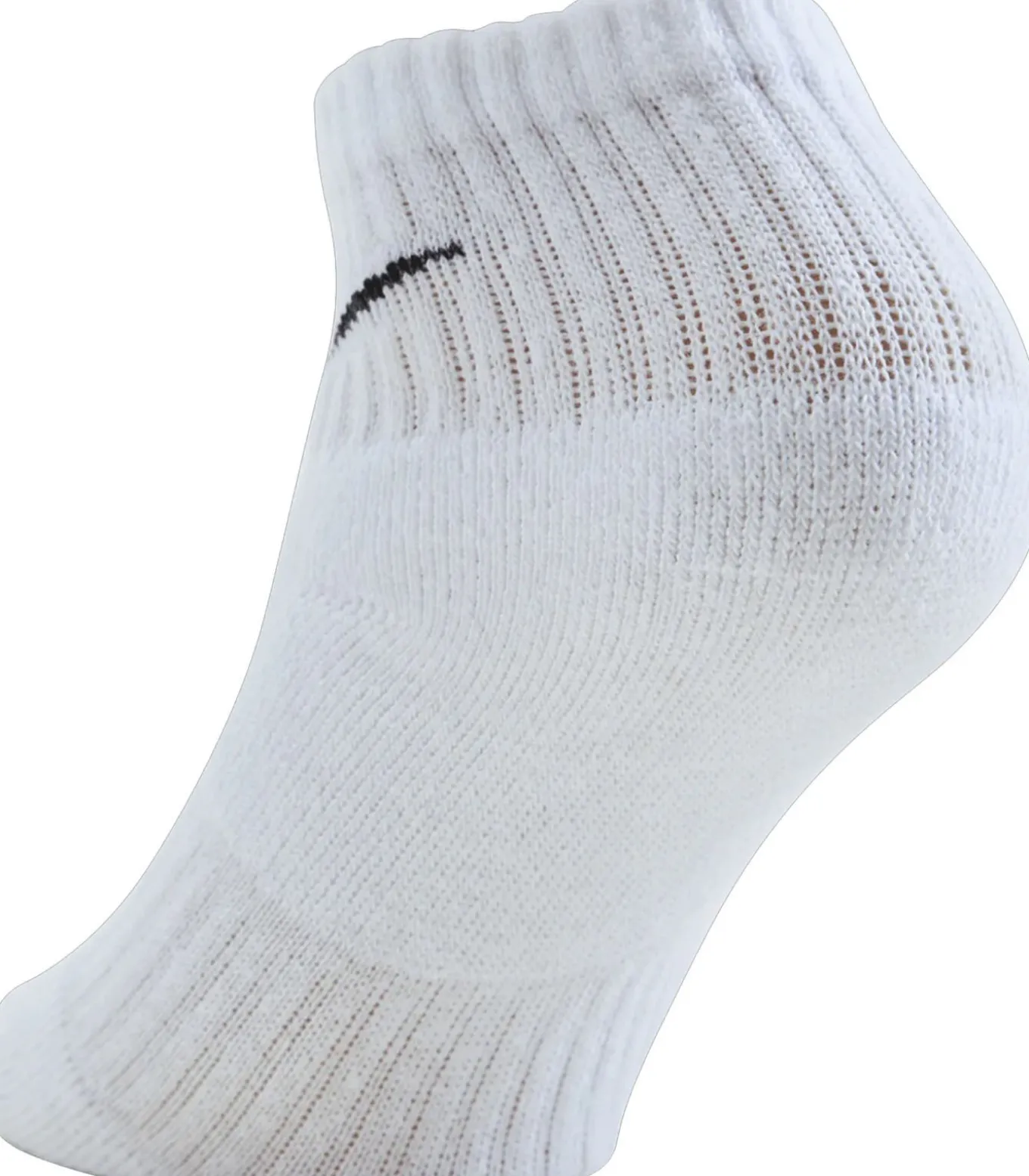 Nike Witte Sokken met Logo, gemaakt van 71% Katoen, 27% Polyester en 2% Elastaan. Dit model kent ontwerp met een Logo en is uitgerust met Dri–FIT en schokabsorberende stoftechnologie. Het product wordt gesmolten vervaardigd en bedoeld voor gebruik in het bad.