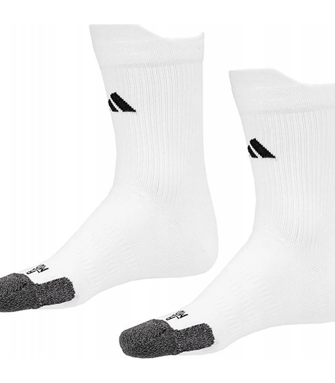Adidas Witte Sokken met Contrast Logo, gemaakt uit 51% recycled polyester, 47% recycled polyamide en 2% elastaan. Deze sokken zijn voorzien van de Heat.Rdy–technologie, die snel droogt, en hebben gladde naadwerk. Het ontwerp van deze sokken toont de bekende Adidas logo. Ze zijn ideaal als je een duurzame keuze maakt bij sportartikelen.