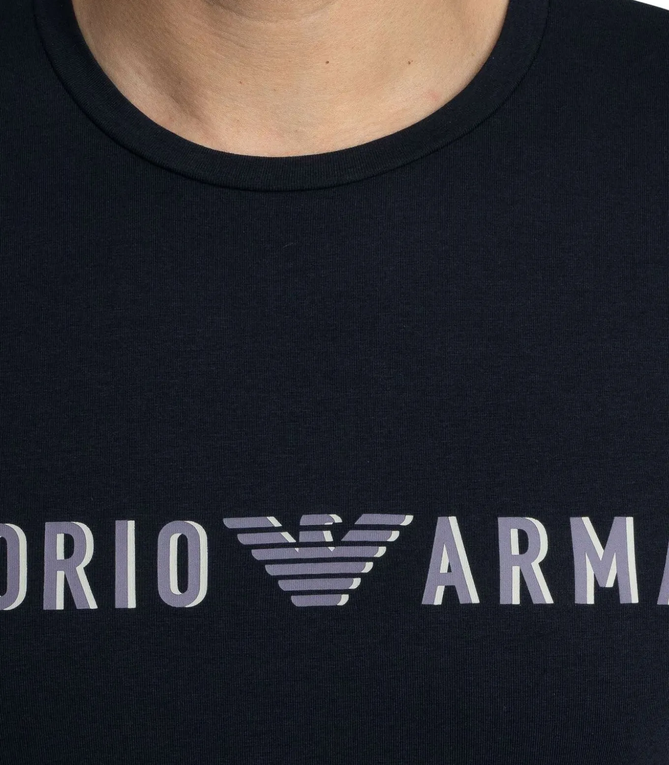 Het Emporio Armani Lounge Mega Logo Crew T–shirt in Armani Blue komt uit de exclusieve loungewear–collectie. Dit T–shirt heeft het opvallende Emporio Armani–logo prominent op de voorkant, waardoor het een echte blikvanger is. De rechte zoom zorgt voor een comfortabele, relaxte pasvorm, perfect om te loungen of casual te dragen. Gemaakt van biologisch katoen, is dit T–shirt niet alleen zacht en ademend, maar ook milieuvriendelijk. Met zijn moderne design en luxueuze uitstraling belichaamt dit T–shirt Emporio Armani’s toewijding aan zowel stijl als comfort.