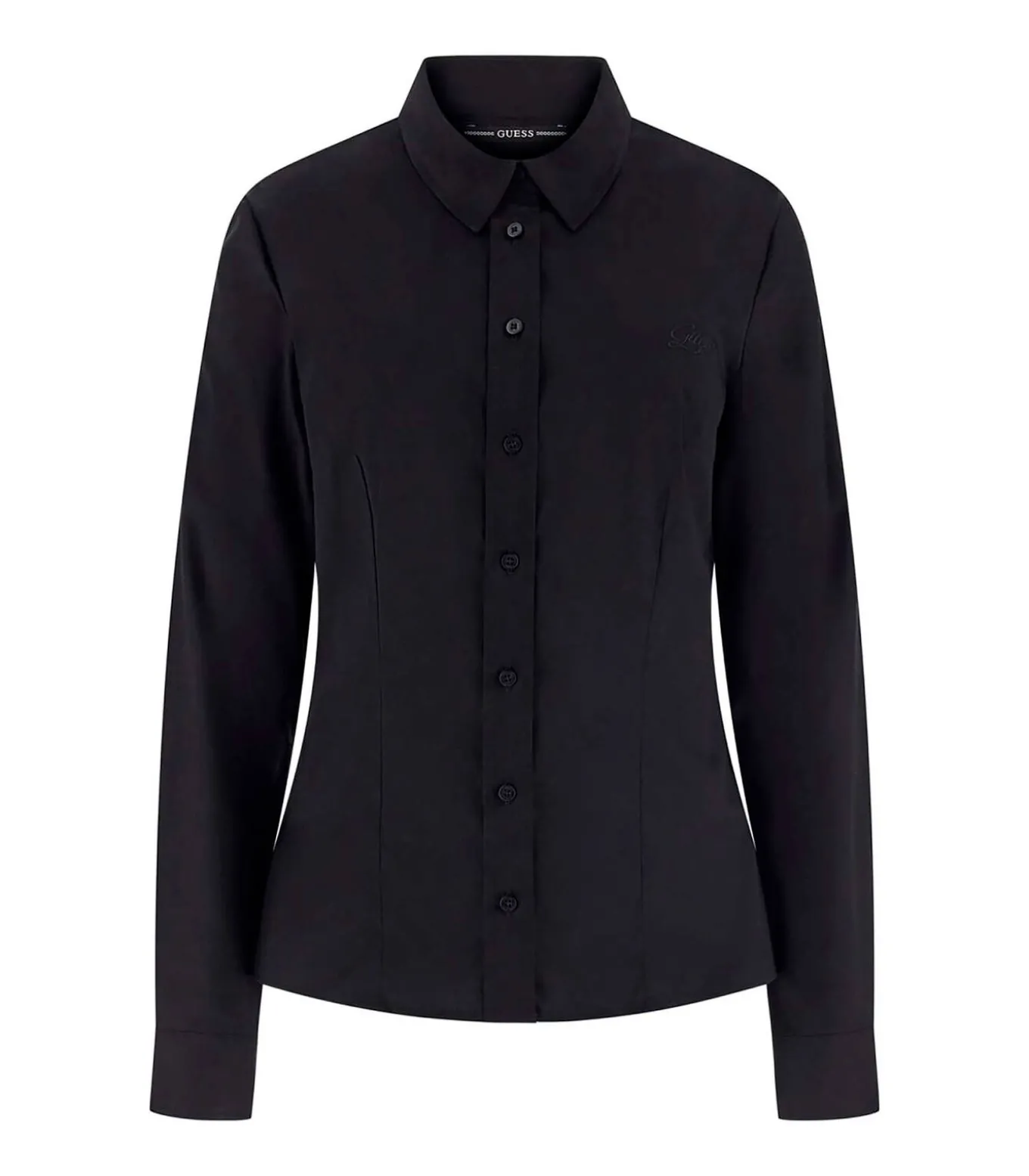 Kleur: Zwart Samenstelling: 95% Katoen, 5% Elastaan Mouwen: Lang Pasvorm: Strak Sluiting: Knopen Details: Klassieke kraag, poplin stof, klein geborduurd logo op de voorkant Gebruik: Een essentieel en veelzijdig kledingstuk, ideaal om elegante of zakelijke looks af te maken met een verfijnde touch.