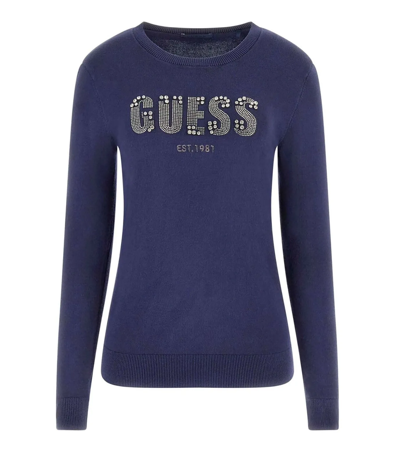 Kleur: Suiting Blue Samenstelling: 82% Viscose, 16% Polyamide, 2% Elastaan Mouwen: Lang Halslijn: Ronde hals Lengte: Regular Fit: Regular Fit Details: Trui van geverfd garen met logo–opschrift, gladde afwerking en geribbelde afwerkingen aan de hals, manchetten en zoom Gebruik: Ideaal te combineren met zowel casual looks als elegantere outfits