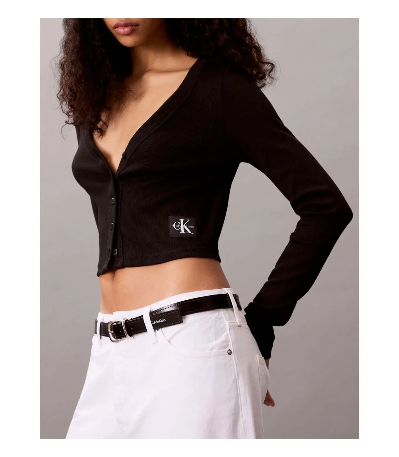 Kleur: zwart. Samenstelling: 94% katoen, 6% elastaan. Mouwen: lang. Halslijn: V–hals. Lengte: kort. Pasvorm: slank. Sluiting: knopen. Details: stretchkatoenen jersey met Lycra® FREEF!T®–technologie, fijn geribbeld, monogramlabel aan de zoom. Gebruik: ideaal voor het completeren van vrouwelijke en veelzijdige looks, perfect te combineren met een high–waist broek of rok.