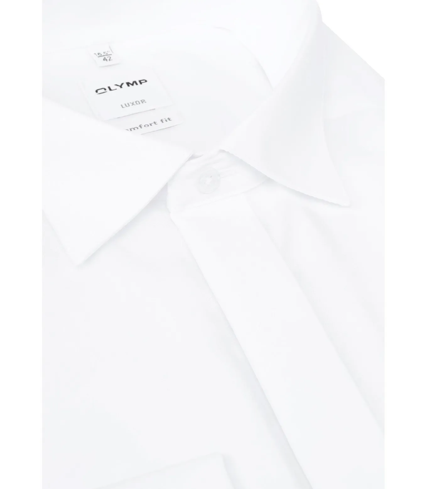 Met dit overhemd uit de Luxor Comfort–Fit (CF) collectie van Olymp ben je klaar voor elke speciale gelegenheid. Dit shirt heeft een traditionele ecru kleur en is voorzien van dubbele manchetten, een vadermoorder boord en een blinde knoopsluiting. Dit zorgt ervoor dat het overhemd erg geschikt is voor geklede feestelijke gelegenheden en kan je met stijlvolle manchetknopen een eigen twist aan je outfit geven. Doordat het overhemd een ruime Comfort–Fit (CF) pasvorm heeft, draagt deze erg comfortabel. Het herenshirt is gemaakt van 100% katoen en voorzien van een Non–Iron finish, wat ervoor zorgt dat het overhemd een hoog draagcomfort heeft en na het wassen weer direct klaar is om aan te trekken.Olymp Luxor OverhemdIn een stijlvolle witte kleurRuime Comfort–Fit pasvormGemaakt van katoen en elastaanMet dubbele manchetten en blinde sluiting