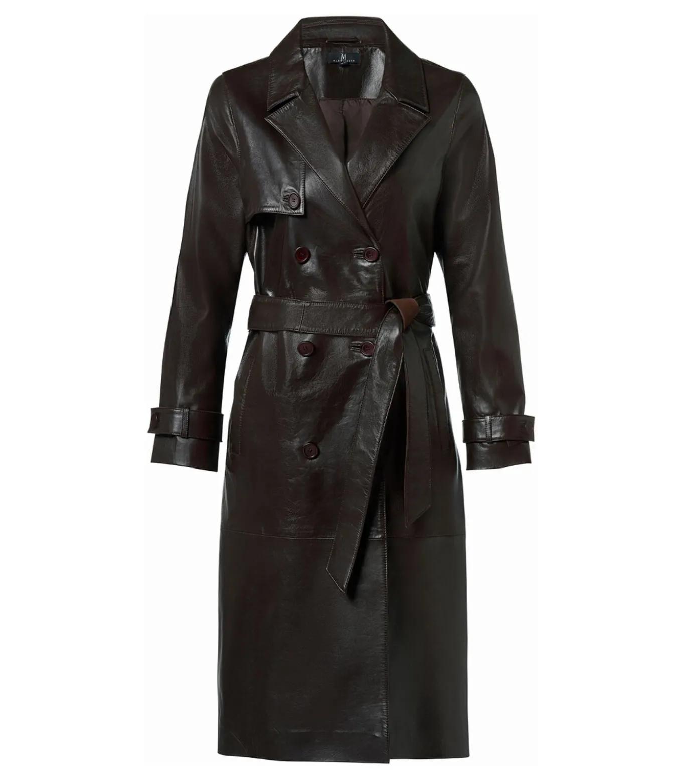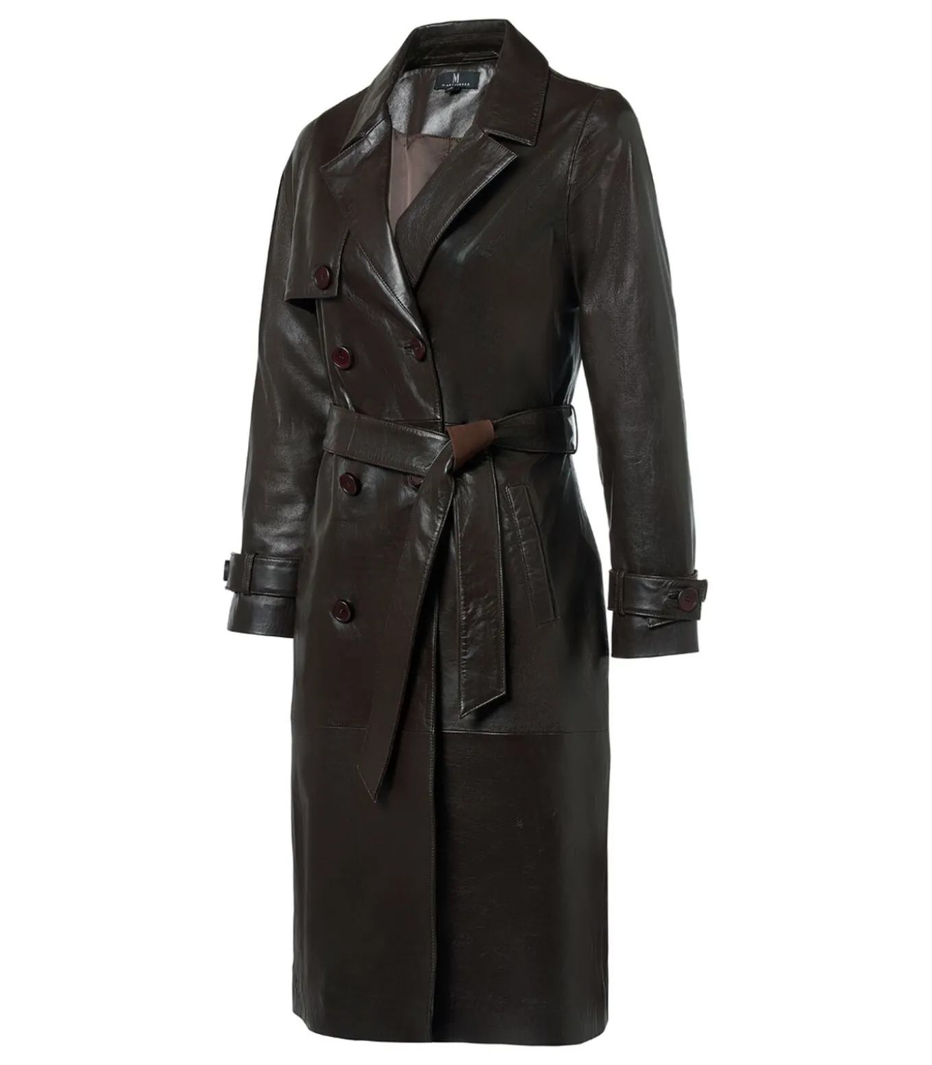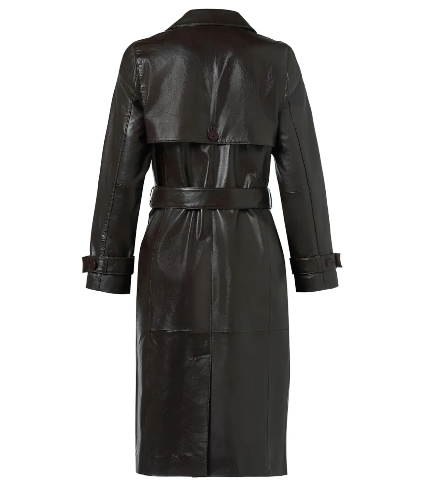 De leren trenchcoat is een veelzijdige en stijlvolle keuze die elk seizoen gedragen kan worden. Dit donkerbruine model is gemaakt van soepel leer van topkwaliteit dat zacht aanvoelt en mooi valt. Het klassieke design bevat een reverskraag, dubbele rij knopen en comfortabele steekzakken, wat de jas een gestructureerd en verfijnd karakter geeft. De rechte pasvorm kan met de strikceintuur eenvoudig worden geaccentueerd. Met een lengte tot op de kuit en het gebruik van duurzaam leer heeft deze jas een tijdloze en luxueuze uitstraling. Creëer een chique look door hem te combineren met de Cherbrough–trui in donkerbruin en de bijpassende Torya–pantalon in bruin. Voor een modieus statement draag je hem met de Caitlin metallic top in brons en de donkerbruine leren Delilah–rok. De Lyana trenchcoat in donkerbruin is de perfecte mix van klasse, comfort en tijdloze elegantie.