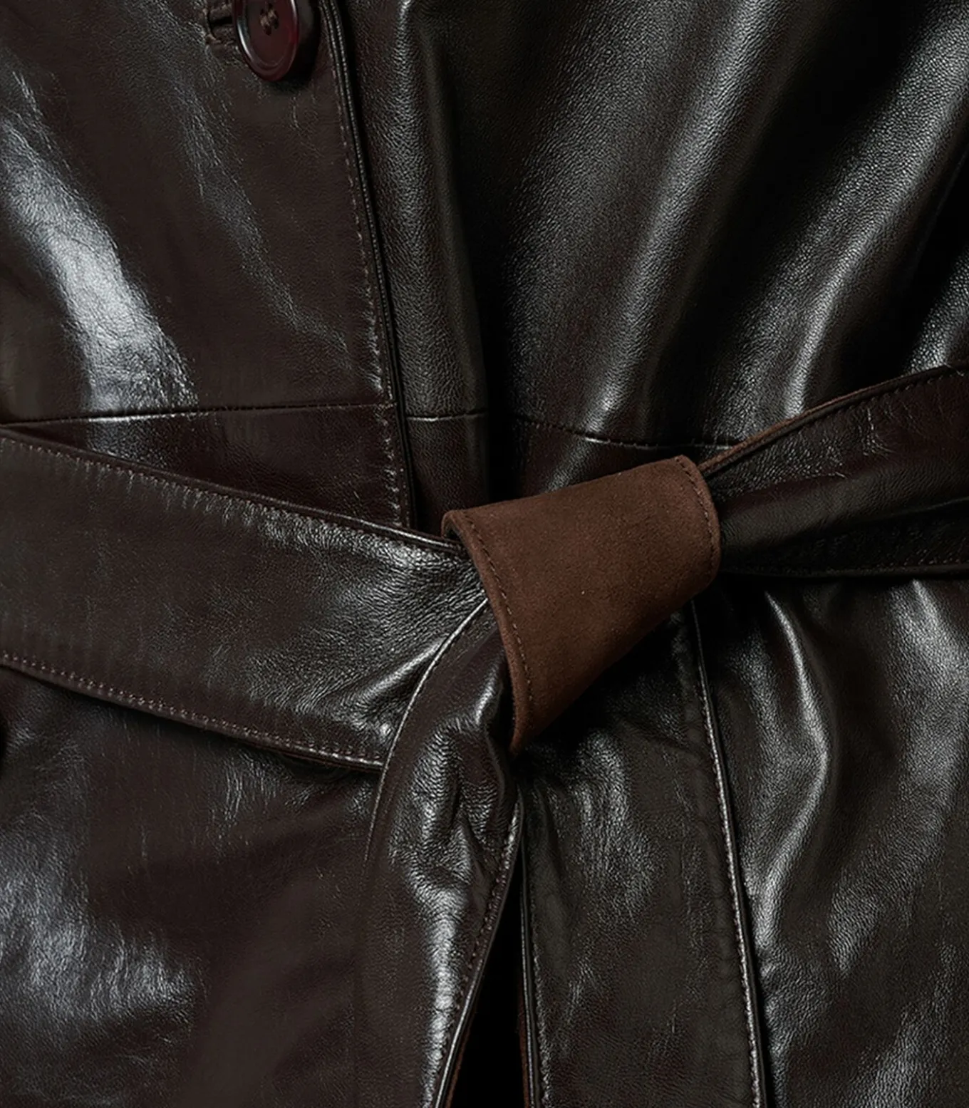 Lyana Leren Jas Donkerbruin